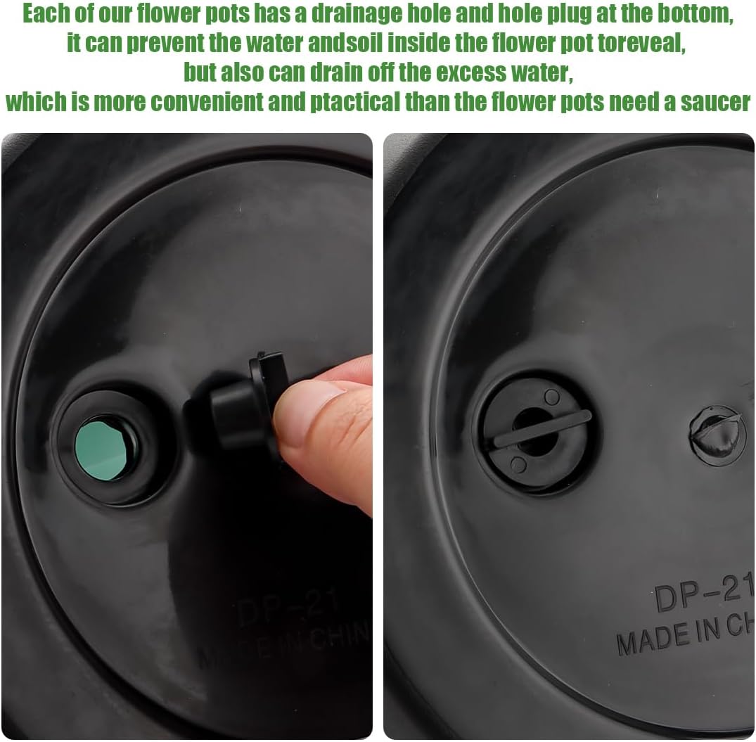 - Built-In Drainage System Pot: Each pot comes with pre-drilled drainage hole to prevent overwatering, along with hole plugs for flexibility. Perfect for indoor and outdoor small and medium size plants