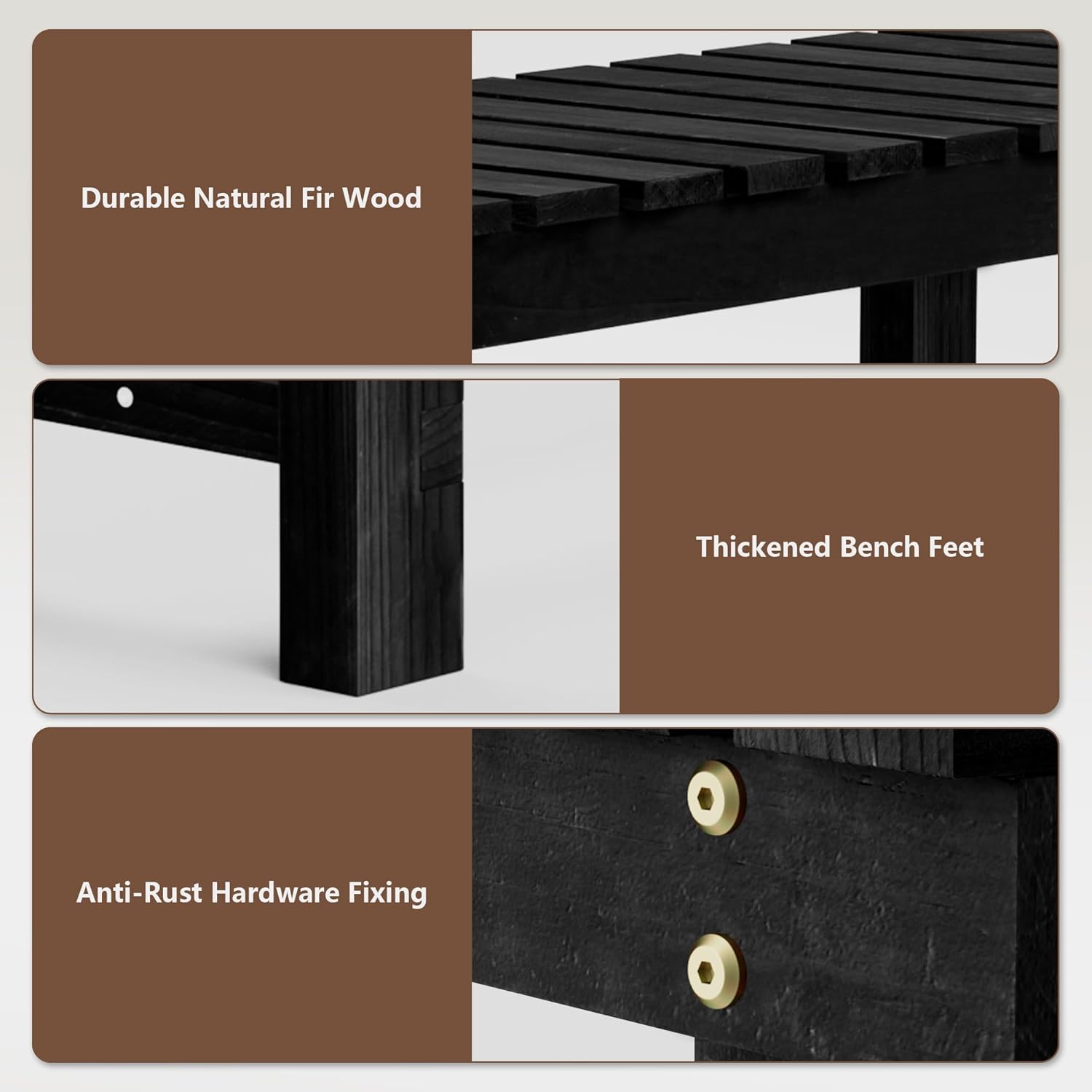 - STRONG LOAD-BEARING - Crafted from cedar wood treated with 300°C high-temperature carbonization, this garden bench resists deformation and corrosion. Thickened planks and rust-proof screws ensure a weight capacity of 330 lbs(35.5")/400 lbs(47.2"), comfortably seating two/three people