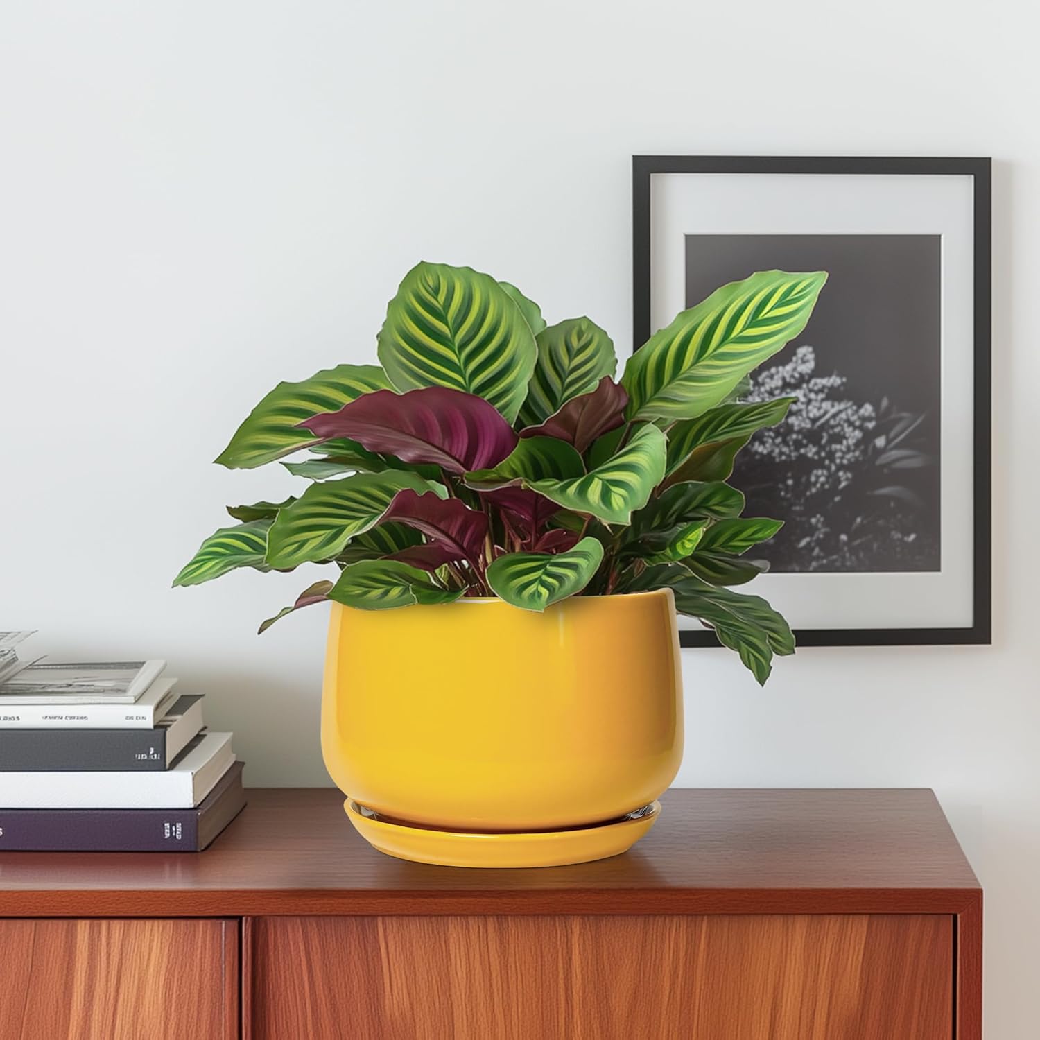 G EPGardening Ceramic Plant Pot - 6 Inch Ceramic Planter with Drainage Hole and Tray, Modern Round Planter, Flower Pot for Indoor Outdoor Plants, Plants Lovers Gifts, House Garden Decor, Yellow