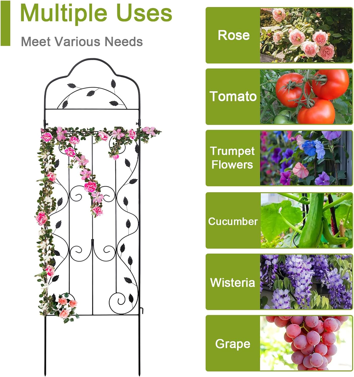 - 4. Space-Saving Gardening Solution: Optimize small yards or urban spaces by training plants upward. Ideal for gardens, vegetable patches, and trellised flower walls, this trellis saves ground space while showcasing climbing roses, clematis, peas, and more. Durable yet lightweight enough to move as your landscape evolves.