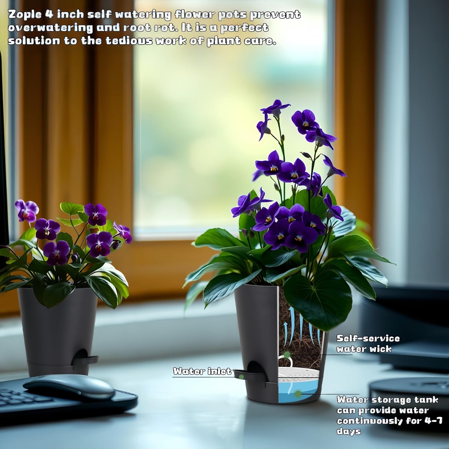 - 💧 Intelligent automatic watering & perfect drainage: The unique reservoir design provides a continuous water supply for up to 4-7 days, and the bottom drainage holes ensure that excess water is discharged smoothly, effectively preventing root rot and allowing plants to grow healthily.