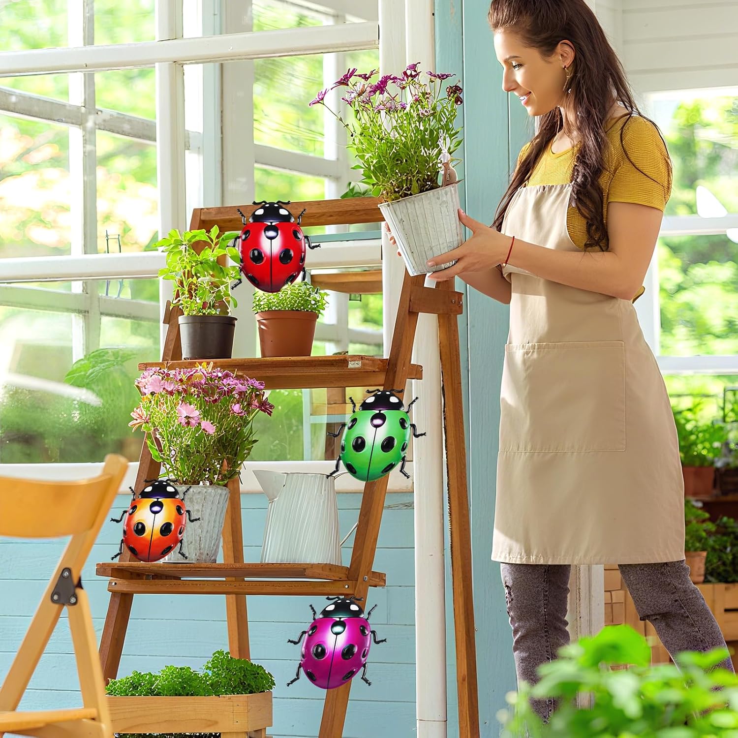- Cute Ladybugs Metal Garden Decor: Adorn your front yard or backyard garden with these cute, Ladybugs-themed lawn ornaments. Delight your kids and brighten up your garden with these farmhouse garden decorations
