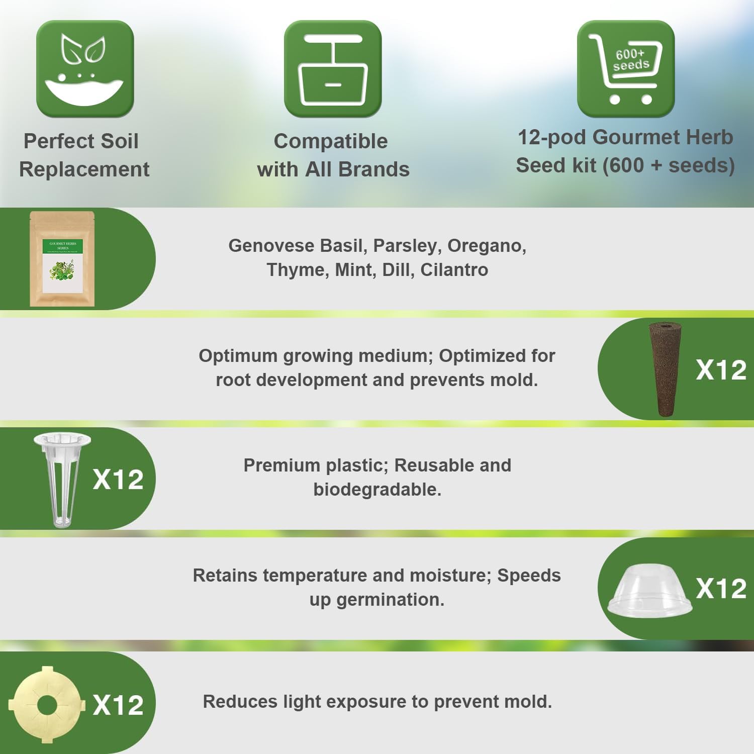 - 【Great Alternative to Big Brands】Our seed pod kits are perfectly compatible with Aerogarden, idoo, Ahopegarden, MUFGA, and most other hydroponics growing systems. Integrate convenience and reliability with economical viability.