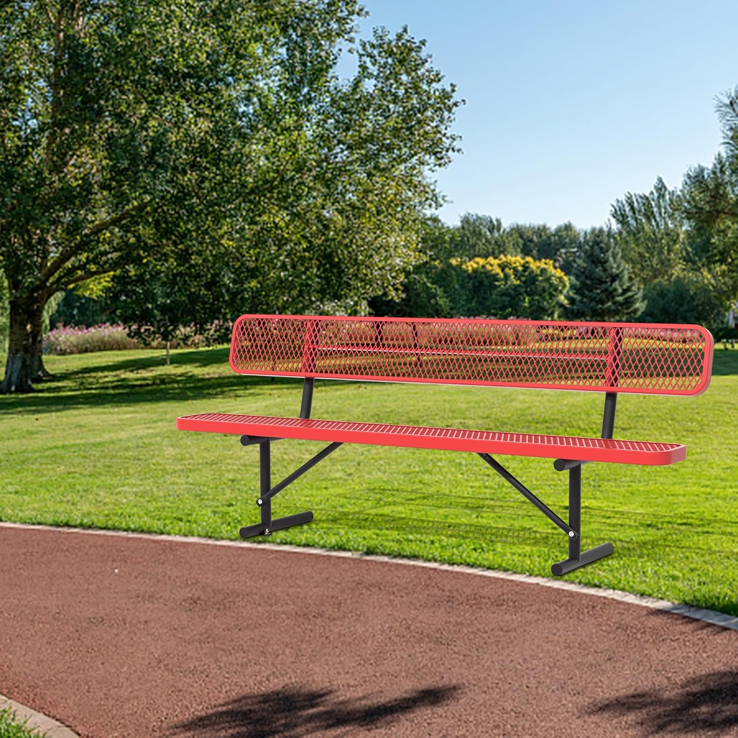 4/6/8 Feet Park Bench for Outside Heavy Duty Metal, Garden Benches Outdoor Bench with Backrest & Portable Frame, for Shopping Malls Stores Parks Patios Decks, Red
