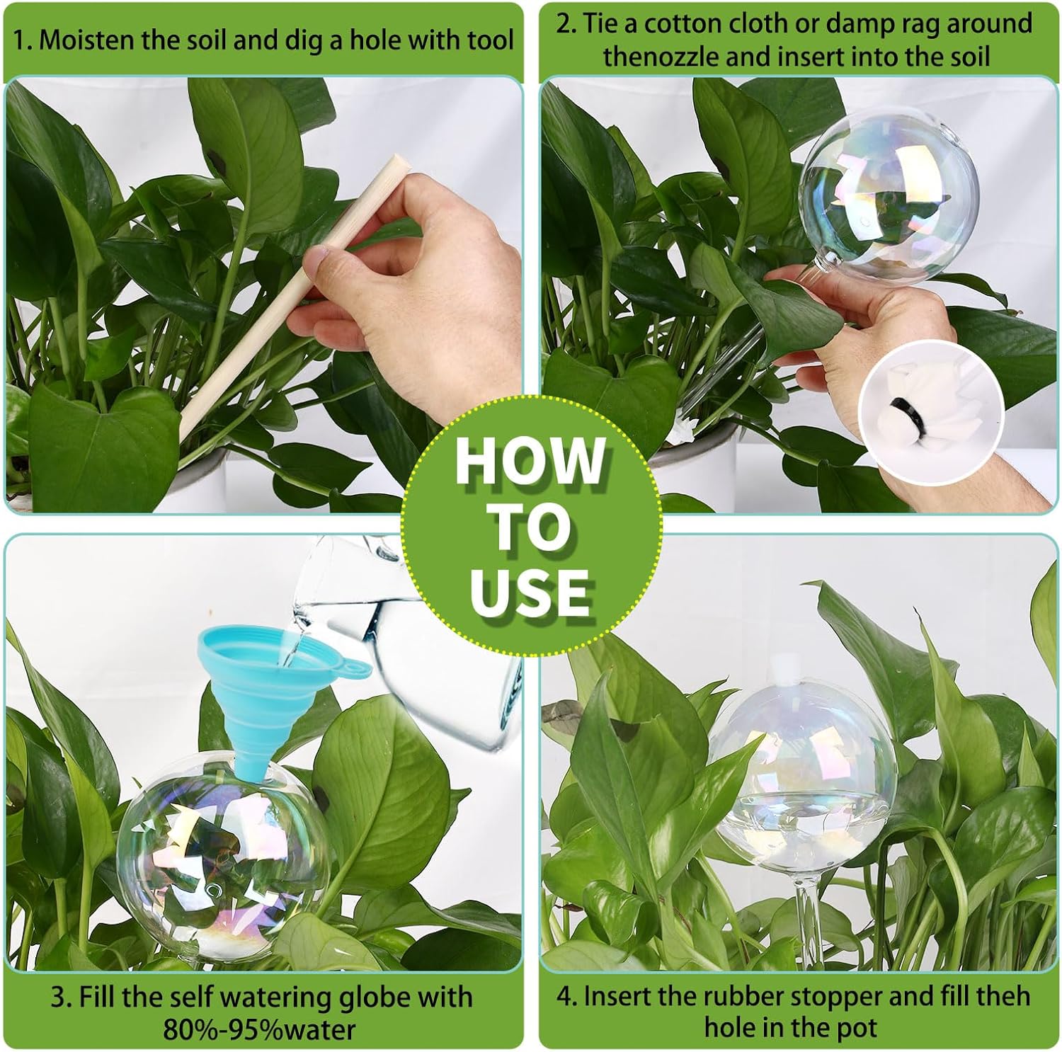 - 💎 Hand-Blown Glass with Rainbow Iridescence Each watering globe is meticulously crafted by skilled artisans, featuring a dazzling rainbow finish that creates mesmerizing light reflections in sunlight – turning your plants into living art.