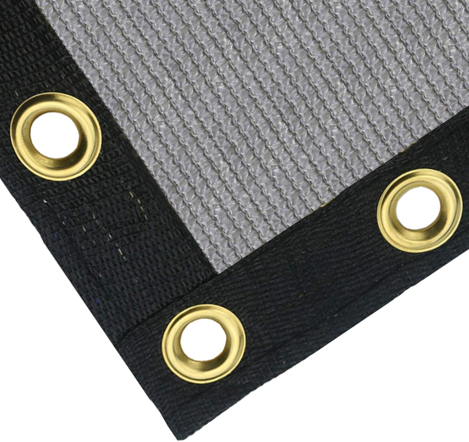 - More intensive grommets: Grommets are made of copper, more grommets are placed evenly along all edges, 11.8 inches apart vertically, 18.9 inches horizontally. All edges are covered with black reinforced 1.3" binding. The grommets and bindings help the screen to hold up in the wind.