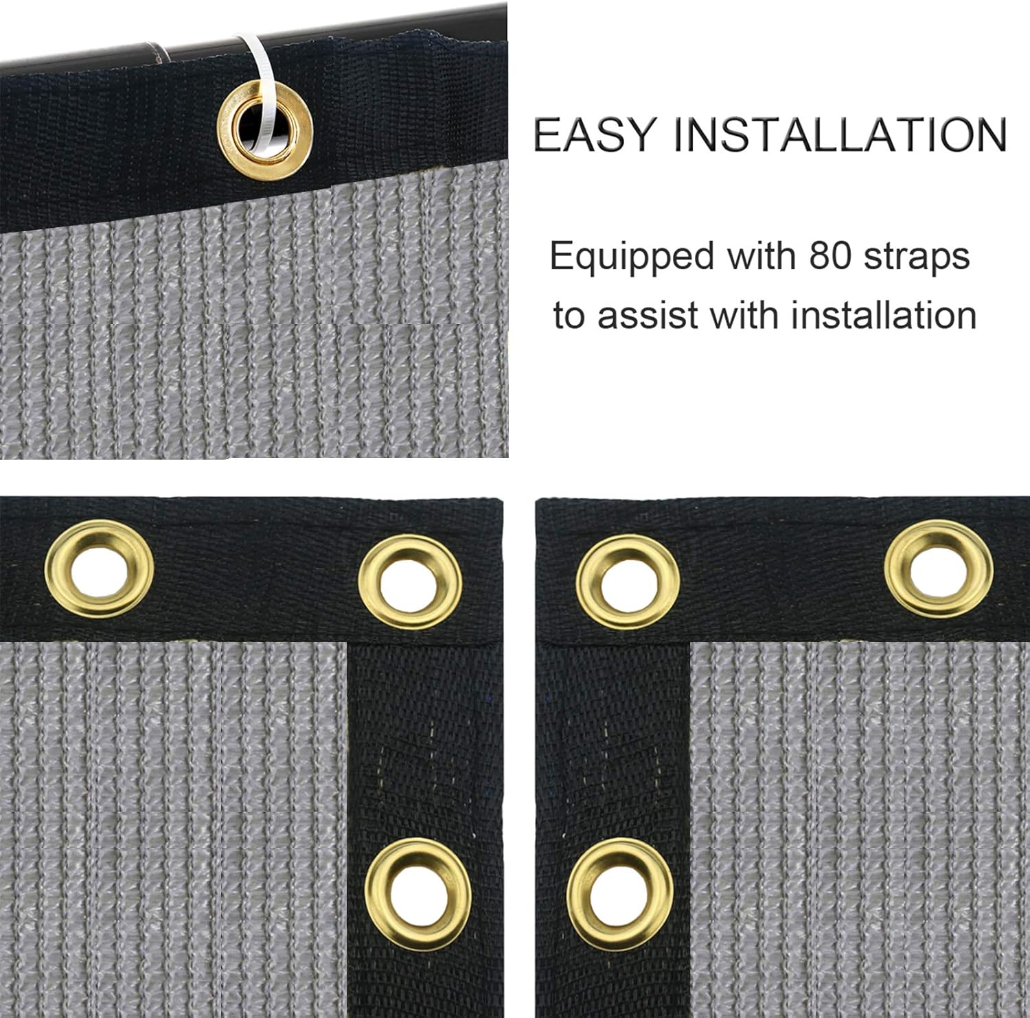 - Easy to install: Use zip ties to fasten the grommets to the fence in each side. Our fence screen is equipped with denser grommets and 80 straps to keep the fence closer to your fence.