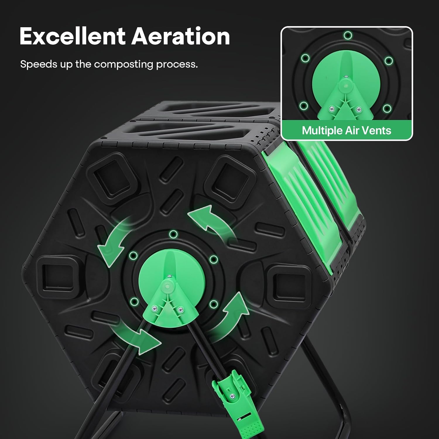 - Well-Ventilated and Odor-Reducing: Equipped with multiple aeration vents and deep fins to increase airflow and oxygen inside the chambers, reducing odors and promoting faster breakdown of organic materials.