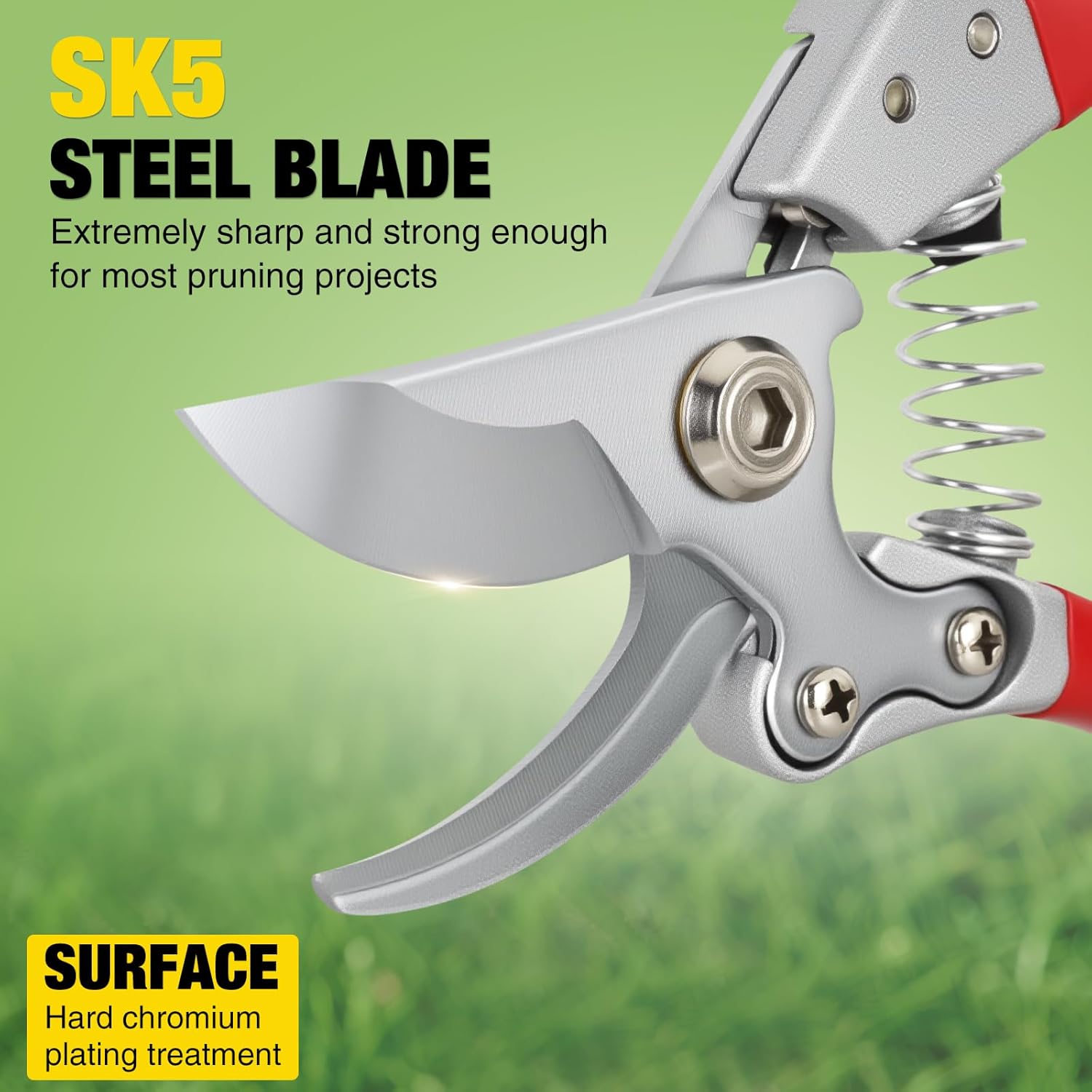 - ULTRA SHARP BLADE: Yesker pruning shears are made of high-quality SK5 steel with a hard chrome-plated surface. They are extremely durable, retain their sharpness and edge, and are rust and corrosion resistant, ensuring smooth and efficient pruning every time. This is the perfect pair of shears gardening tools to easily meet your pruning needs