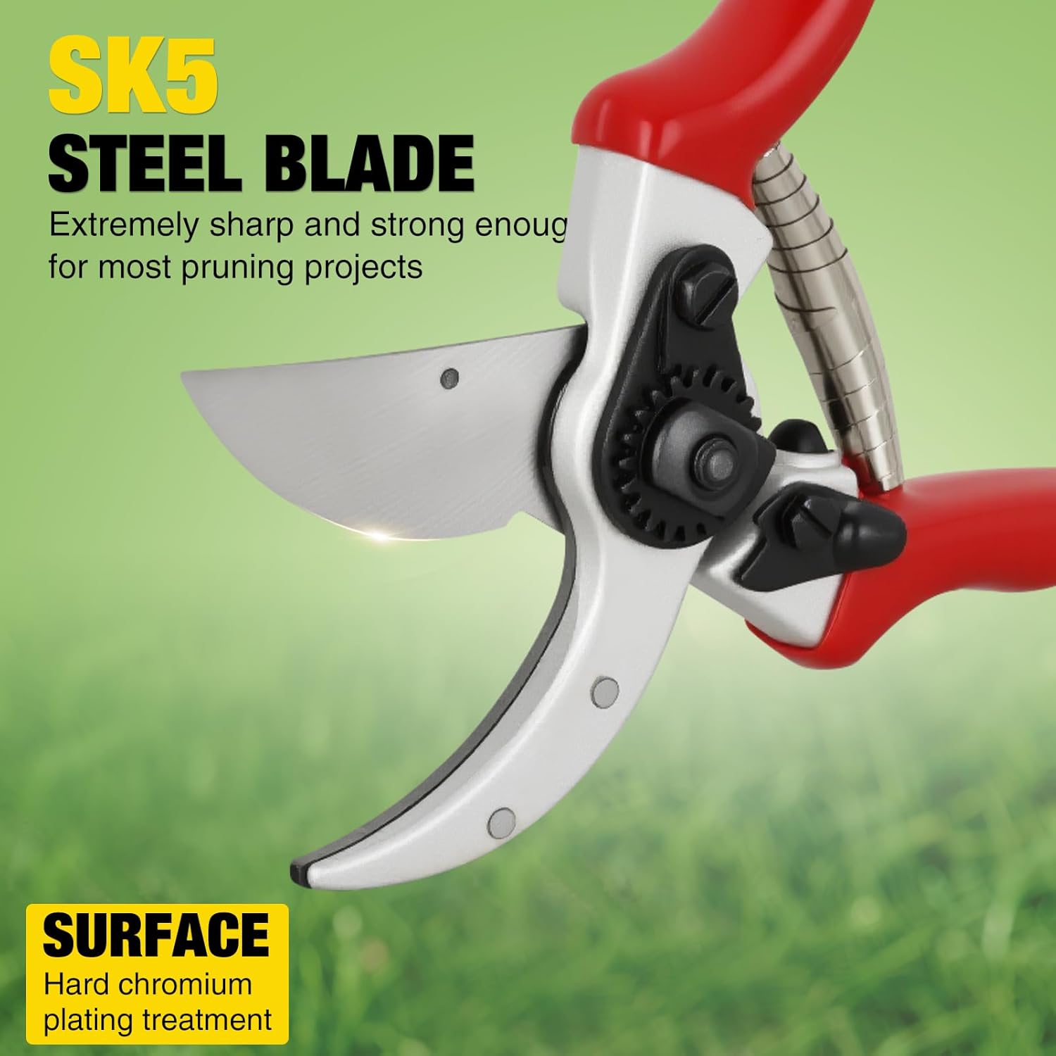 - ULTRA SHARP BLADE: Yesker pruning shears are made of high-quality SK5 steel with a hard chrome-plated surface. They are extremely durable, retain their sharpness and edge, and are rust and corrosion resistant, ensuring smooth and efficient pruning every time. This is the perfect pair of shears gardening tools to easily meet your pruning needs