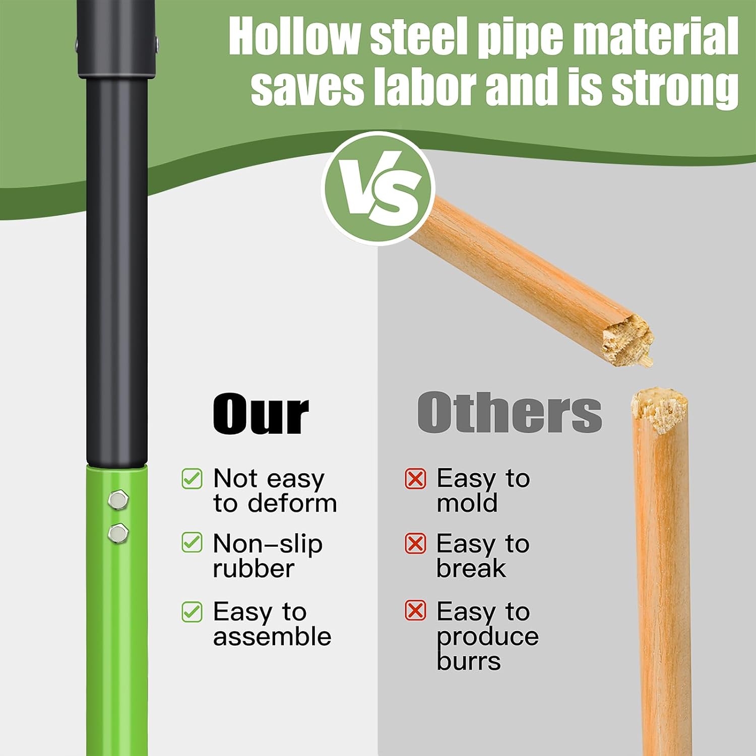 - 【Strengthen Handle and Fork Head】The handle and fork head connection of the pitchforks for gardening is upgraded to a double-screw design, which makes the pitch fork more stable to use and will not shake. Equipped with high-strength steel handles will not break