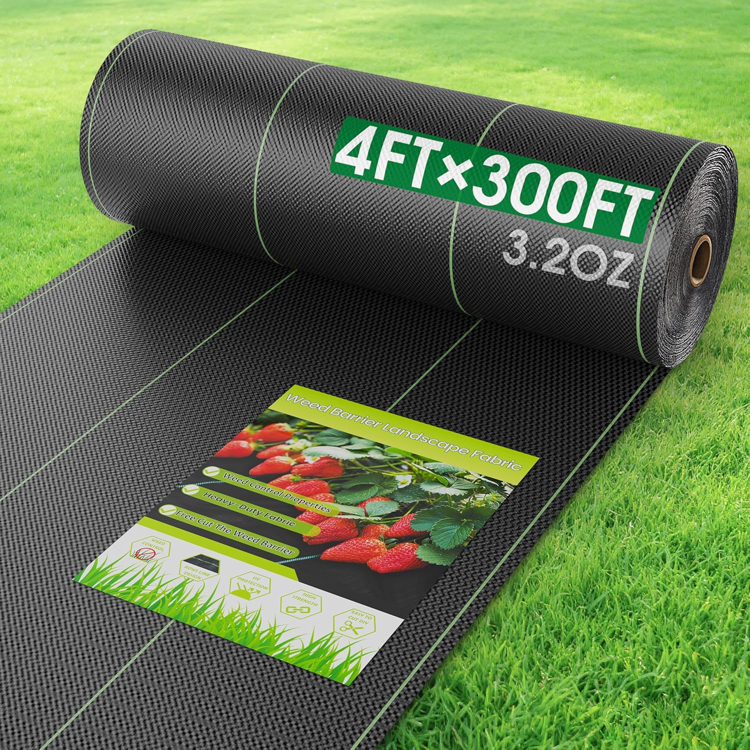 4FTx300FT Weed Barrier Fabric Heavy Duty, Gardening Landscape Fabric Cover Mat, Durable Weed Control Fabric for Garden Bed Cover, Landscaping, Commercial Driveway, Underlayment Use (4x300FTT-3.2OZ)