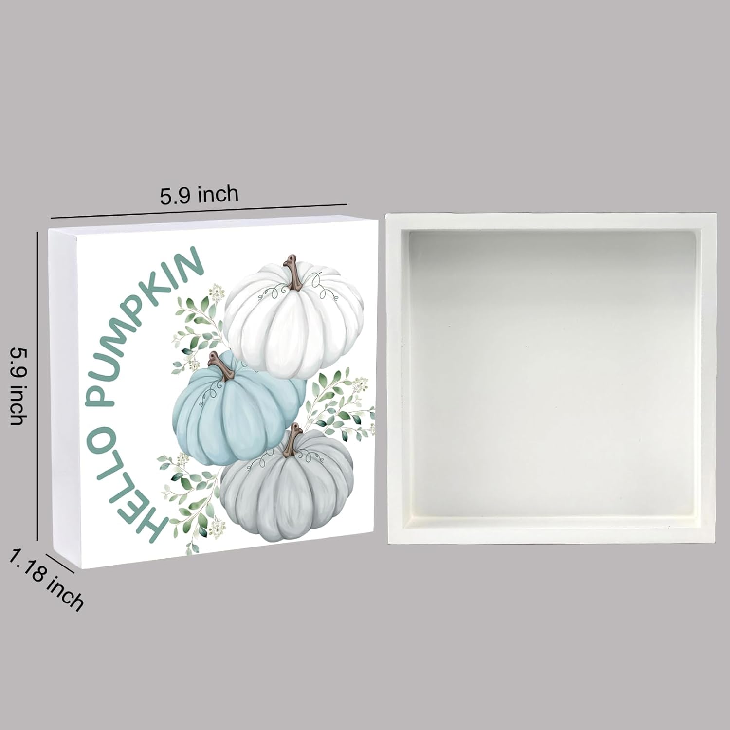 Fall Decorations for Home Fall Decor Home Room Hello Pumpkin Table Wood Box Sign Rustic Wooden Shelf Desk Office Decor Season Sign House Warming Gifts 5.9 x 5.9 Inch