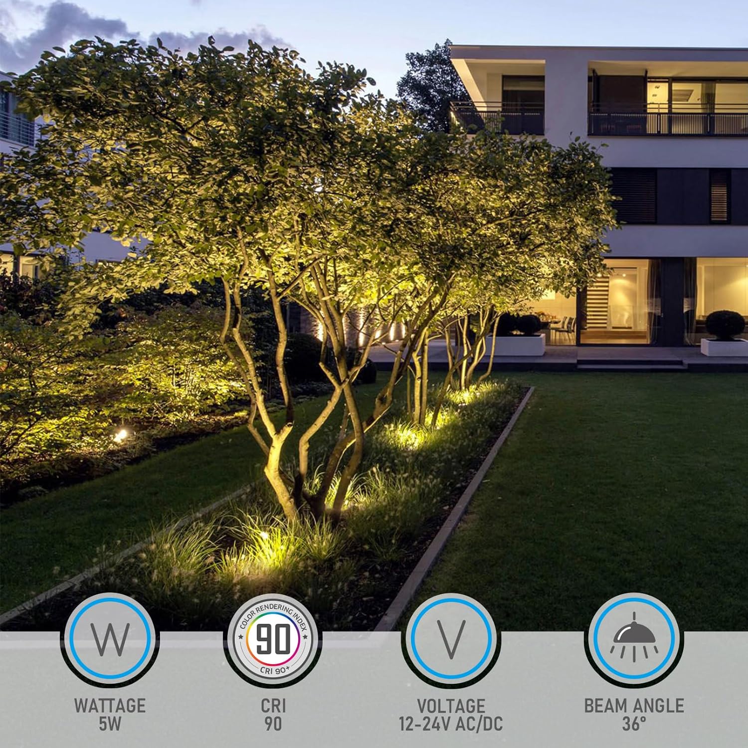 - CRI90 & 12-24V AC/DC: CRI90 color rendering index, present the beauty of your garden as daytime. With its 12V-24V AC/DC low voltage, this LED in-ground lights can work with most 12V landscape lighting systems
