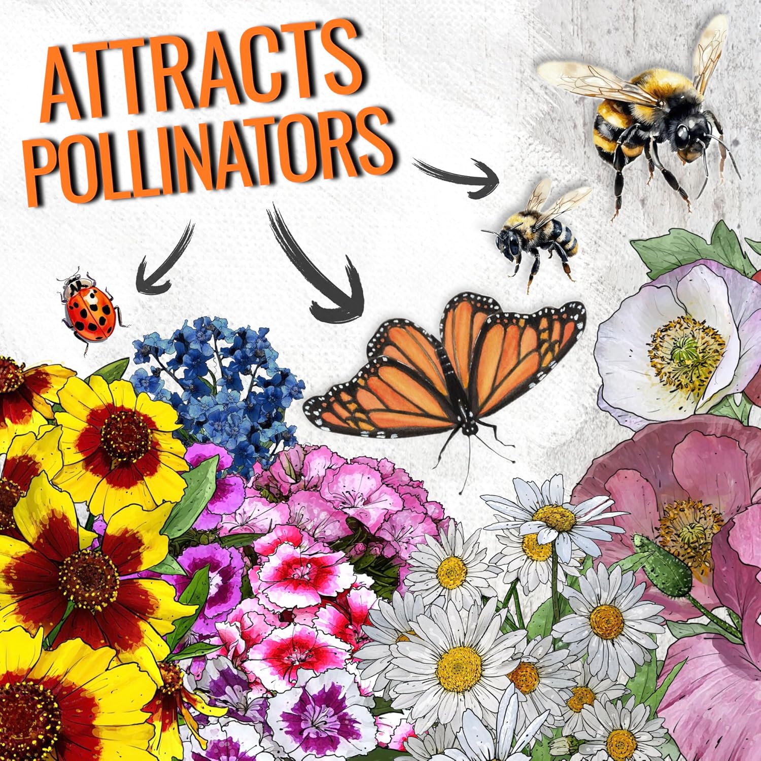 - Flower Seeds: Premium bulk package of wildflower seeds to establish a colorful garden filled with red flowers, orange flowers, yellow flowers, blue flowers, pink flowers, purple flowers and more!