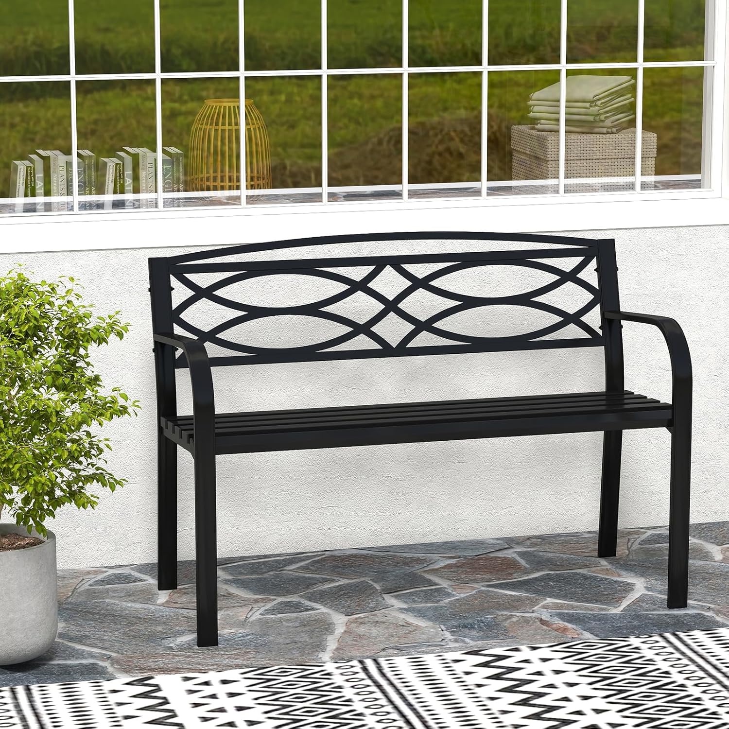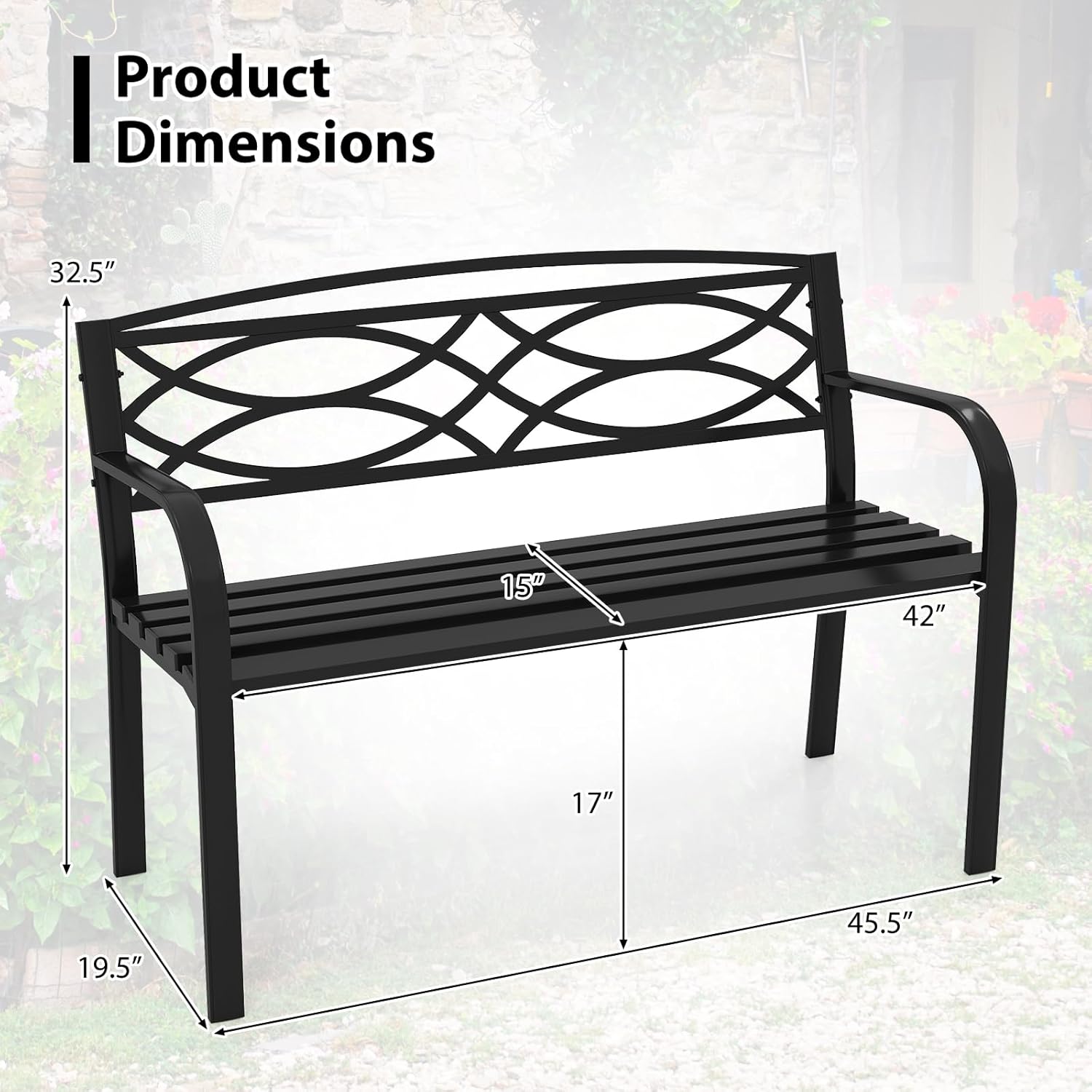 Tangkula Outdoor Metal Garden Park Bench, Heavy-Duty Metal Slatted Loveseat for 2 People with Curved Armrests & Backrest, Patio Park-Style Seating Furniture for Backyard, Poolside, Porch