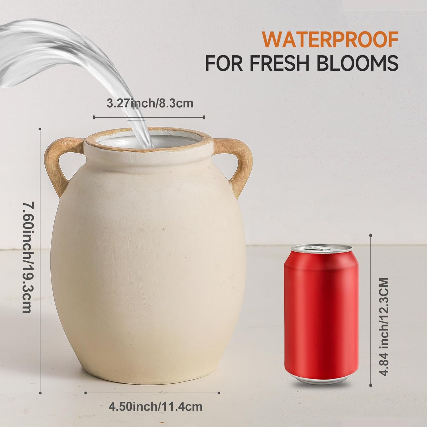 Ceramic Flower Vase 7.6 inch Farmhouse Rustic Vase Decorative Pottery Terracotta Vases for Home Decor Table Mantle Fireplace Living Room Bathroom Wedding Centerpiece