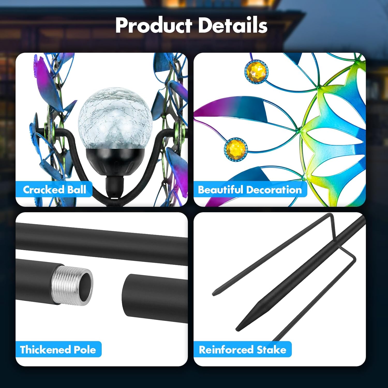 Solar Wind Spinner, Waterproof Outdoor Metal Wind Sculpture for Patio, Lawn & Garden Decor (Retro Muticolor)
