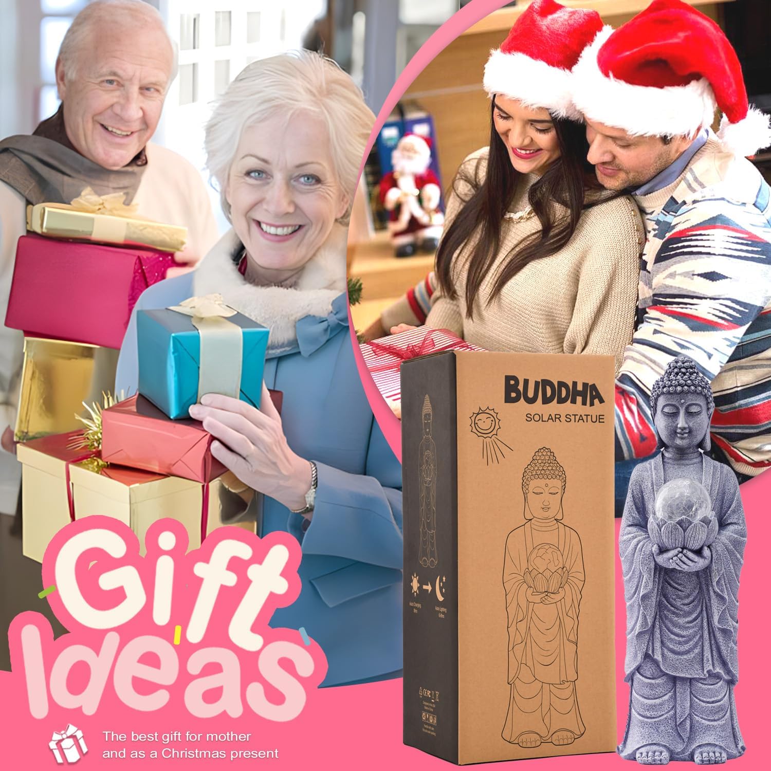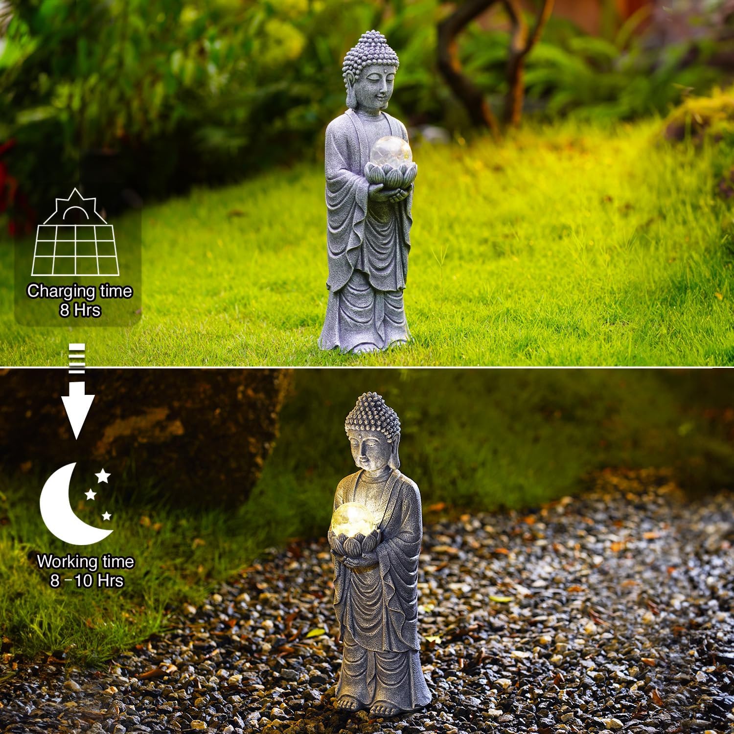 Goodeco Buddha Statue with Solar Lotus – 18.2 Inch Tall Large Garden Buddha Statue for Outside, Outdoor Zen Garden Statues