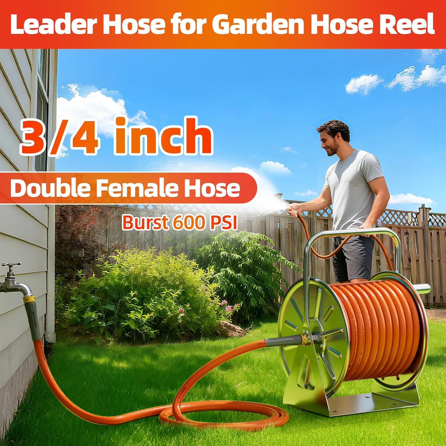 Garden Water Hose 5 ft x 3/4 in with Female to Female Connector, Small Leader Hose for Hose Reel, Heavy Duty, Flexible & Lightweight, Water Pipe, Outdoor Water Hose Extension Adapter
