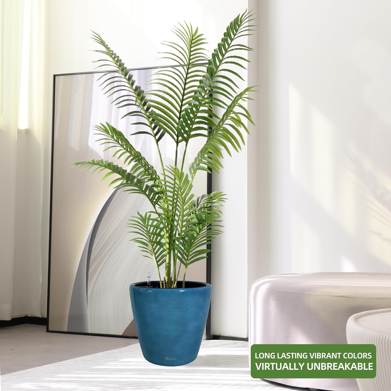 Dexceder 18x17 Self Watering Planter with Wheels Indoor Outdoor, Inner Pot Design, Thickened Large Floor Standing Flower Plant Pot with Water Level Indicator (Peacock Blue Gradient)