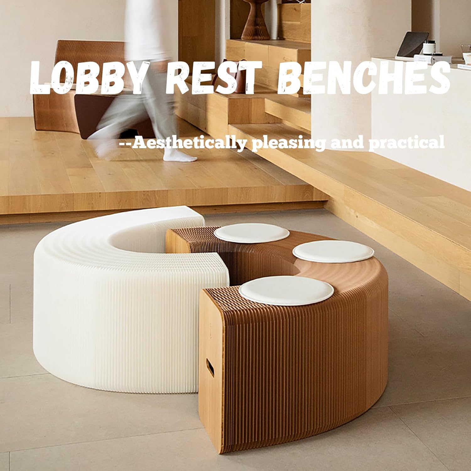 Foldable Kraft Paper Stool, Honeycomb Accordion Folding Bench, Collapsible Paper Stool for Small Spaces, Portable Footrest and Side Table for Living Room and Office,White-30×30×300cm