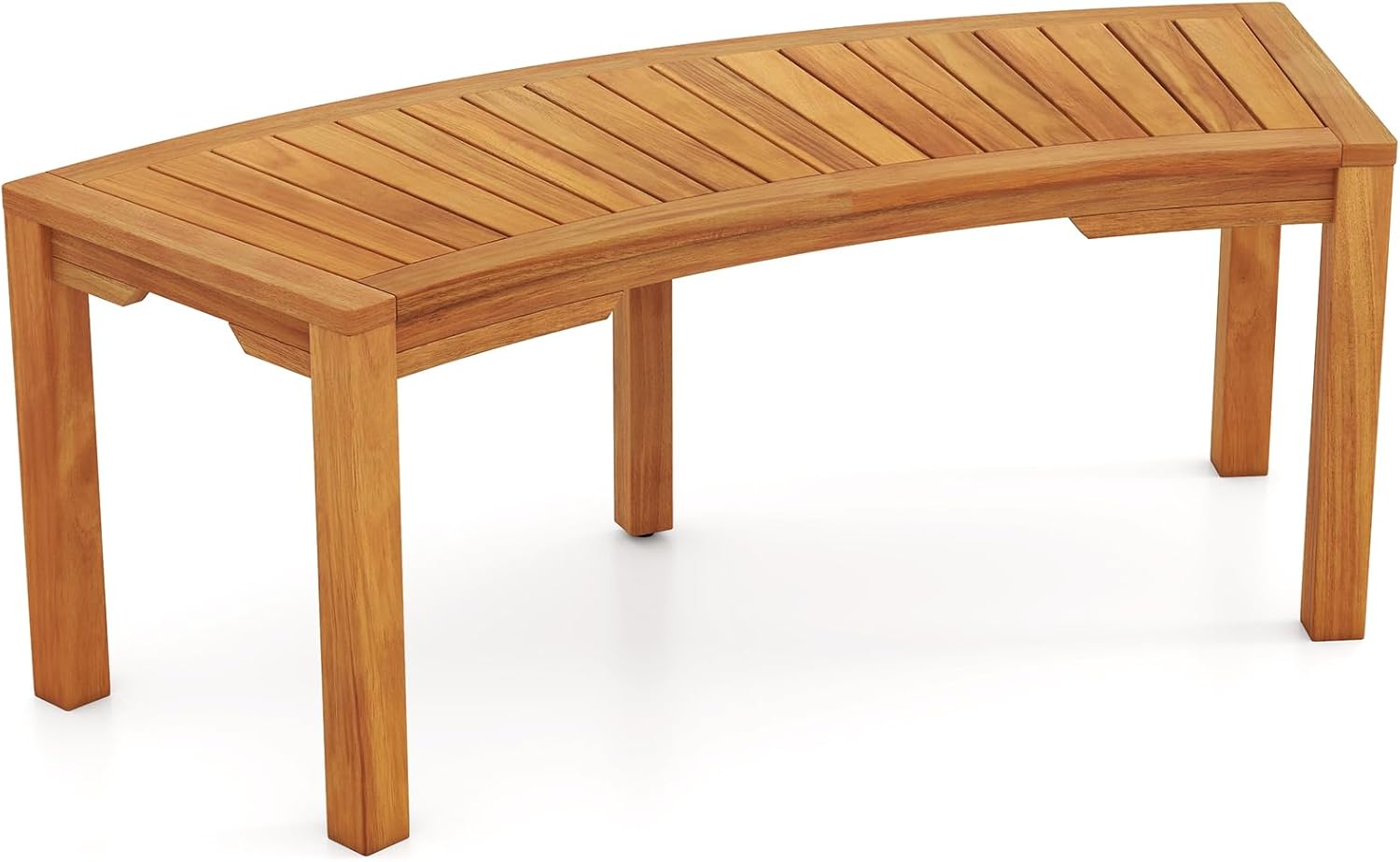 Tangkula Outdoor Curved Bench, Acacia Wood Fire Pit Bench w/Slatted Seat, Patio Backless 2-Person Seating for Porch, Yard, Garden, 800 LBS Max Load, Oil Painted (1, 45")