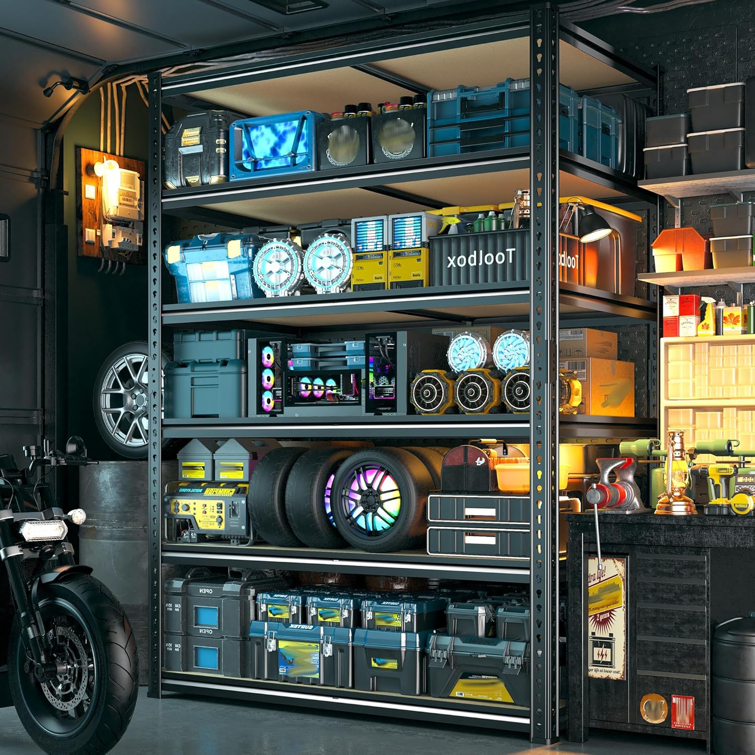 - ăSafe & Sturdy Rolled-Edge ConstructionăThe shelves' thickened steel columns feature smooth edges that protect hands from sharp corners while reinforcing structural durability. The industrial-chic rolled design adds sleek aesthetics to garages, workshops, or pantries â safety and style united