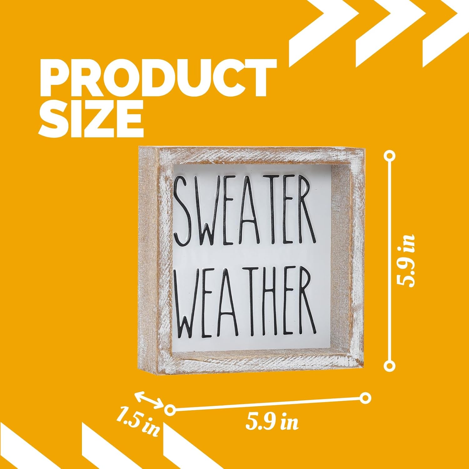 Embossed Sweater Weather Sign, Rustic Fall Decorations for Home, Fall Centerpieces for Table Cubicle Desk Mantel Fireplace, Autumn Tiered Tray Decor