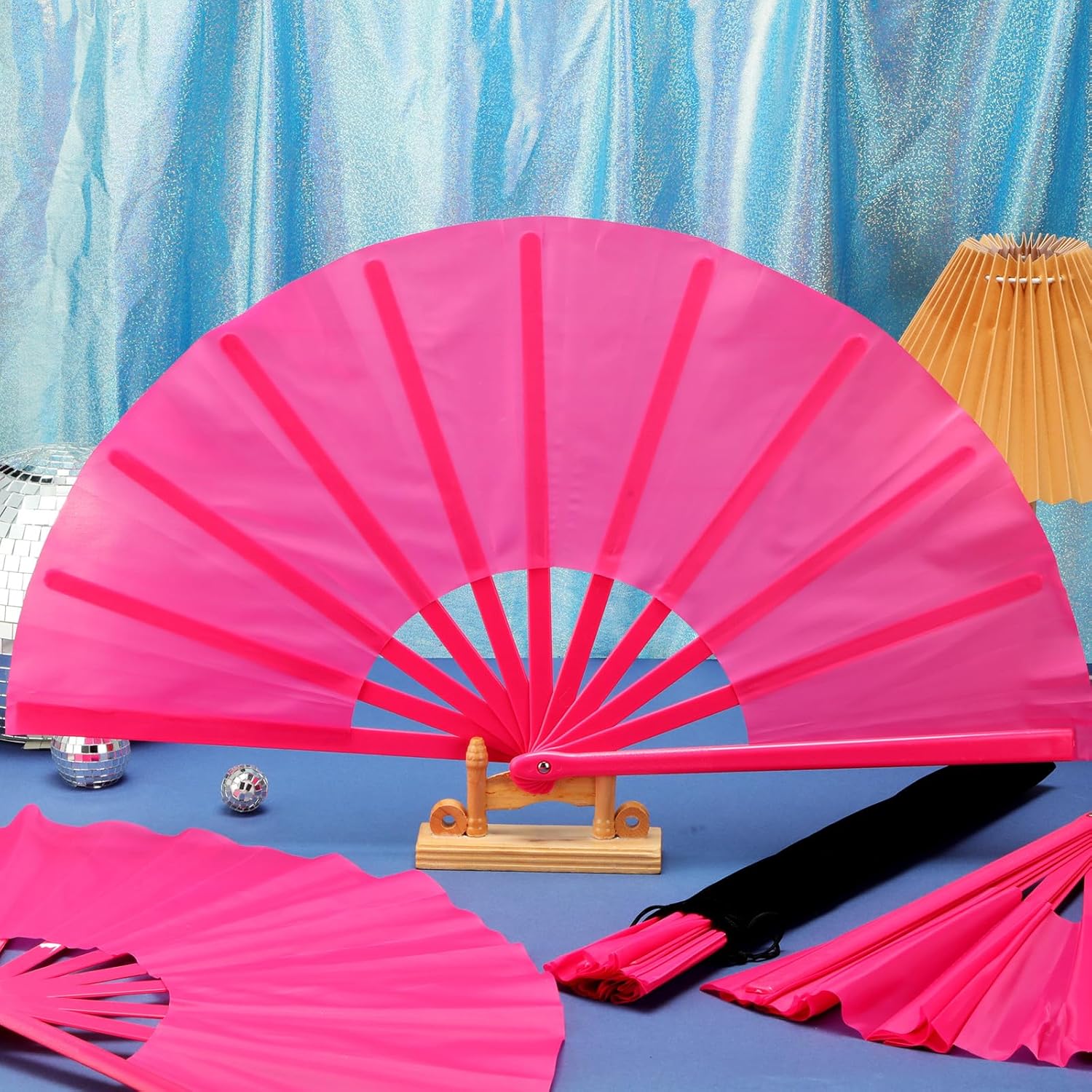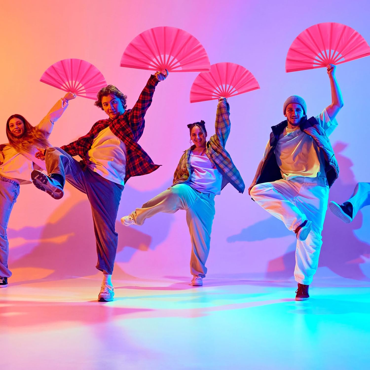 Blulu 4 Pcs 13 Inch Large Folding Hand Fans for Line Dancing Big Clapping Popping Raves Fans Bulk for Dancing Boots on The Ground Festival Party Decoration(Classic Style, Rose Red)