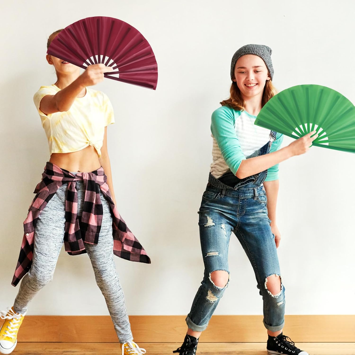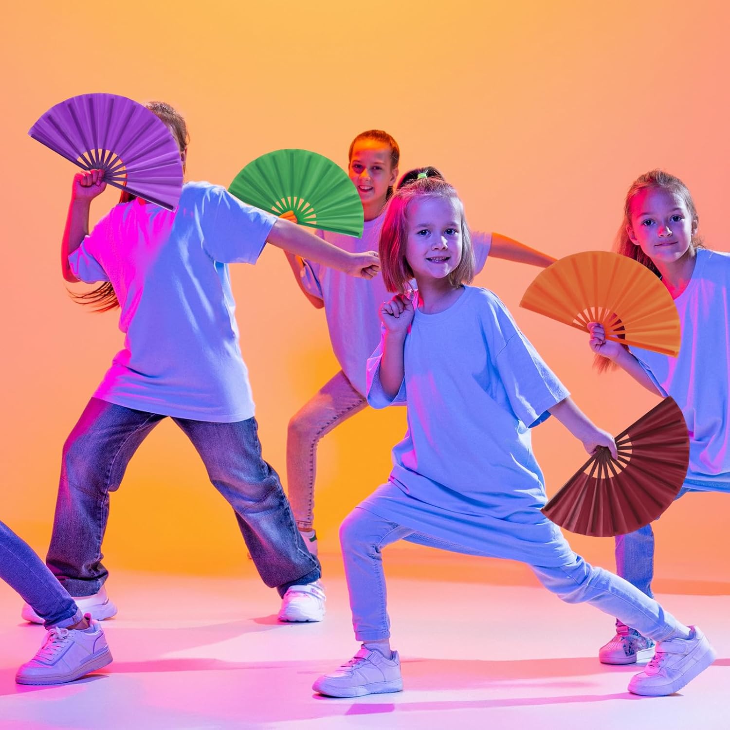 Blulu 4 Pcs 11 Inch Large Folding Hand Fans Bulk Clapping Popping Rave Fans for Kids Women Men for Dancing Boots on The Ground Festival Party Decoration(Classic Style, Retro Color)