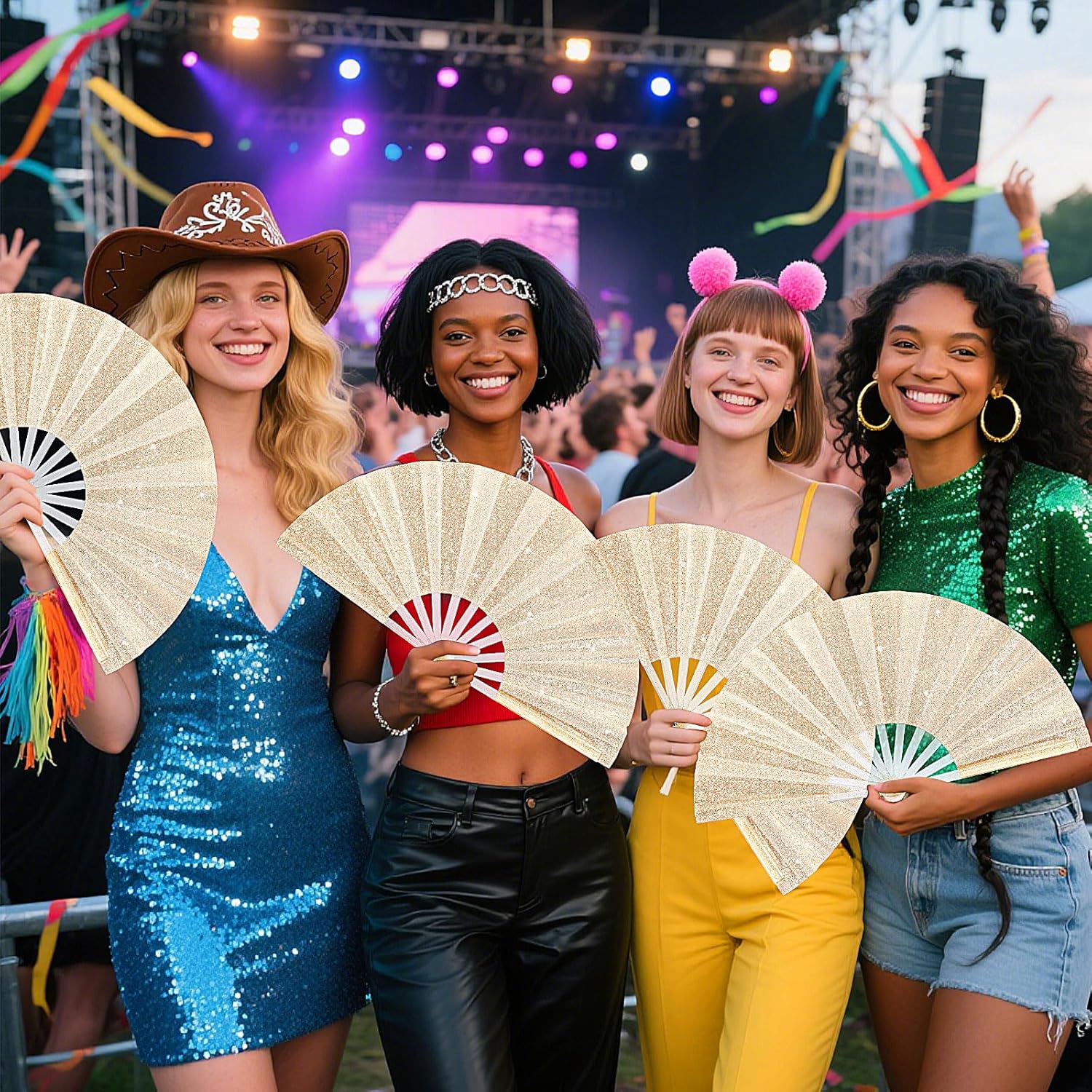 Blulu 4 Pcs 13 Inch Large Folding Hand Fans for Line Dancing Big Clapping Popping Raves Fans Bulk for Dancing Boots on The Ground Festival Party Decoration(Classic Style, Gold)