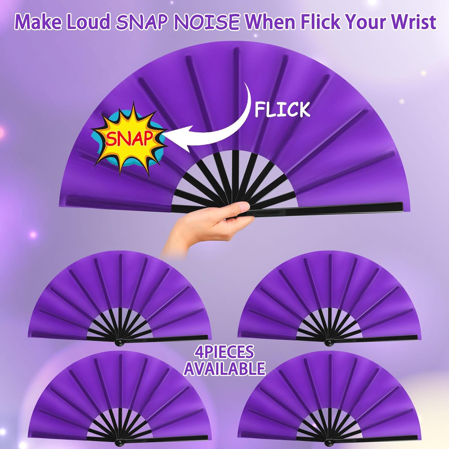 Blulu 4 Pcs 13 Inch Large Folding Hand Fans for Line Dancing Big Clapping Popping Raves Fans Bulk for Dancing Boots on The Ground Festival Party Decoration(Classic Style, Purple)