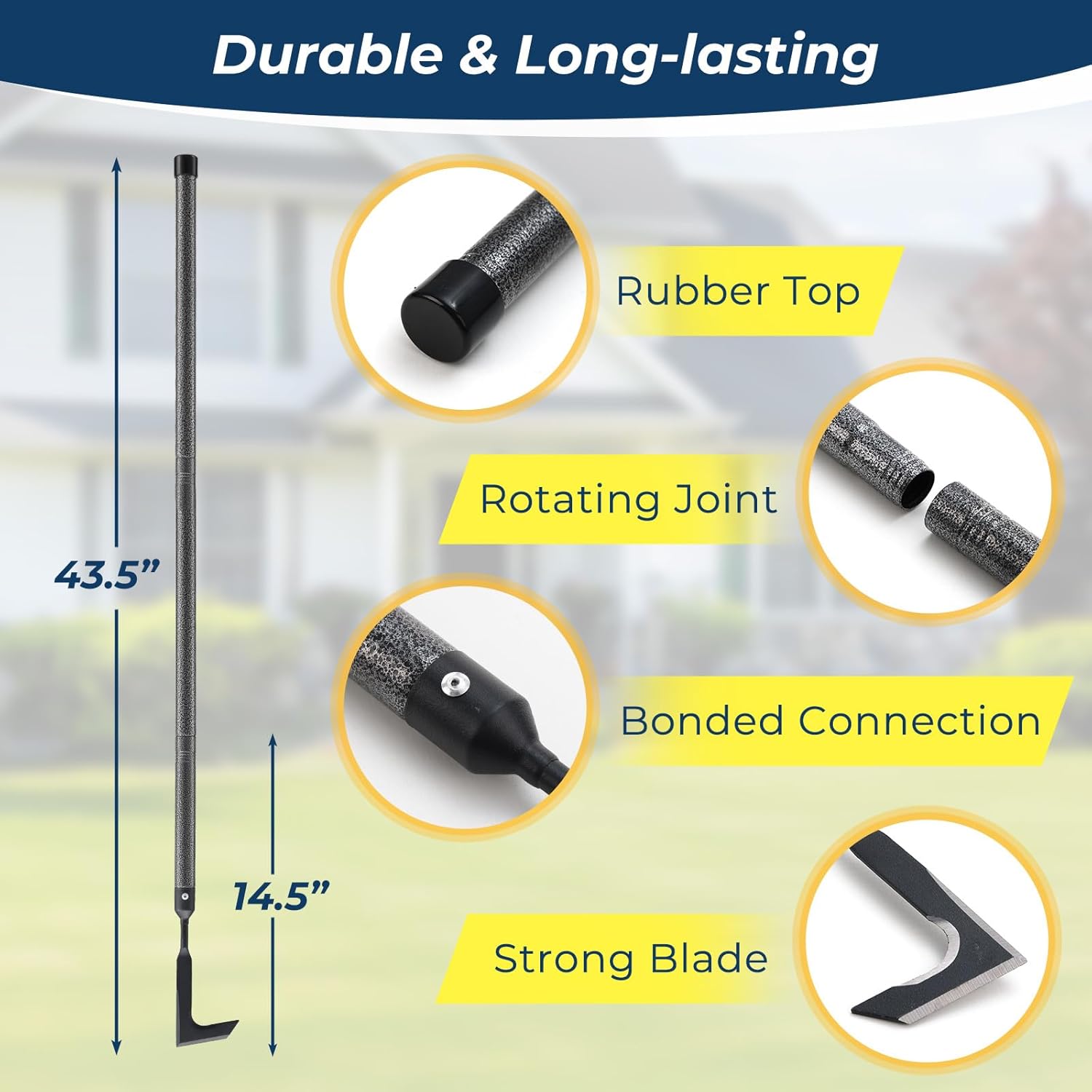 - ✅Customizable Working Length - adjustable metal handle extends from 14.5" to 43.5", perfect for reaching under decks, fences, or high walls.
