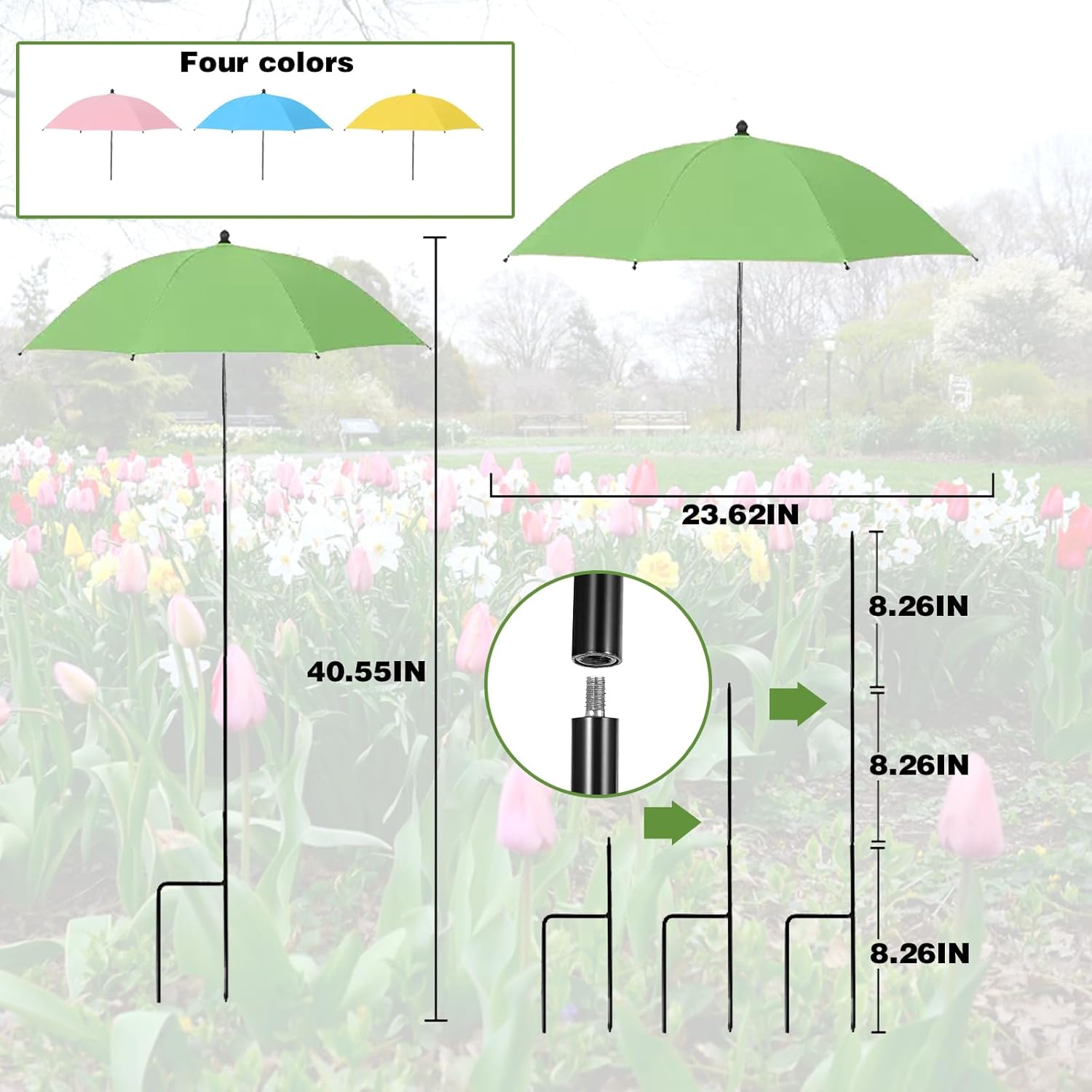 - Design Adjustable Angles & Higher Height: The arm of the outdoor sun shade plant umbrella can be adjusted to different angles for easy positioning according to need. This set of four plant umbrellas consists of four umbrellas, four H-shaped metal stakes and eight extend metal stakes. By connecting the metal stakes, you can achieve heights of 24.01" and 40.55", ensuring protection for plants of all sizes