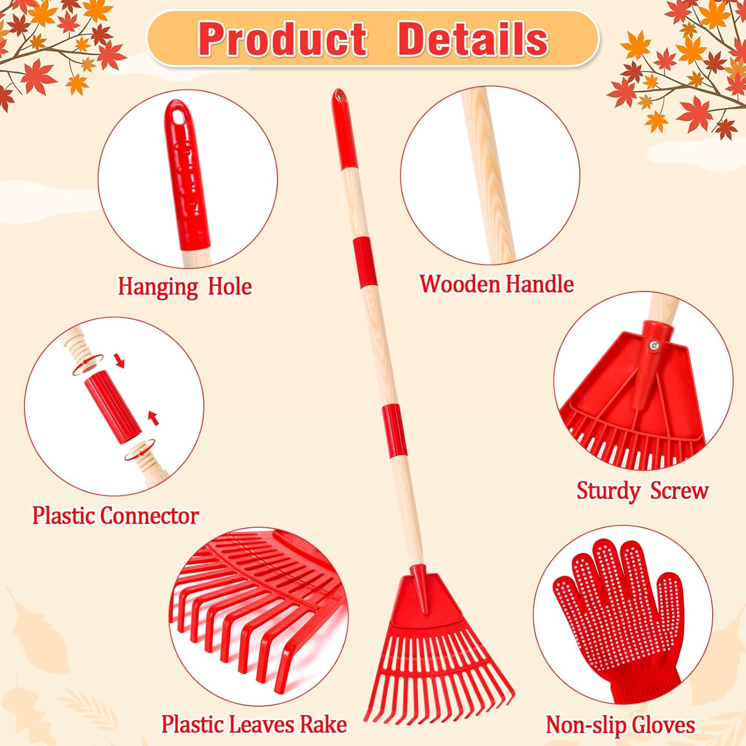 - Wonderful Gifts Choice: Kids leaf rake set is the perfect gift for kids, such as birthday gift, Halloween gift, Christmas gift or autumn yard gift, kids gardening set is nice gift for gardening lovers, perfect outdoor toy for boys and girls over 4 years old. Makes a great gift, perfect for schools, party favors, autumn leaves, beach, park, backyard, sand box, special needs, stress relief and so much more, children rake for leaves is also perfect outdoor toys for boys and girls.