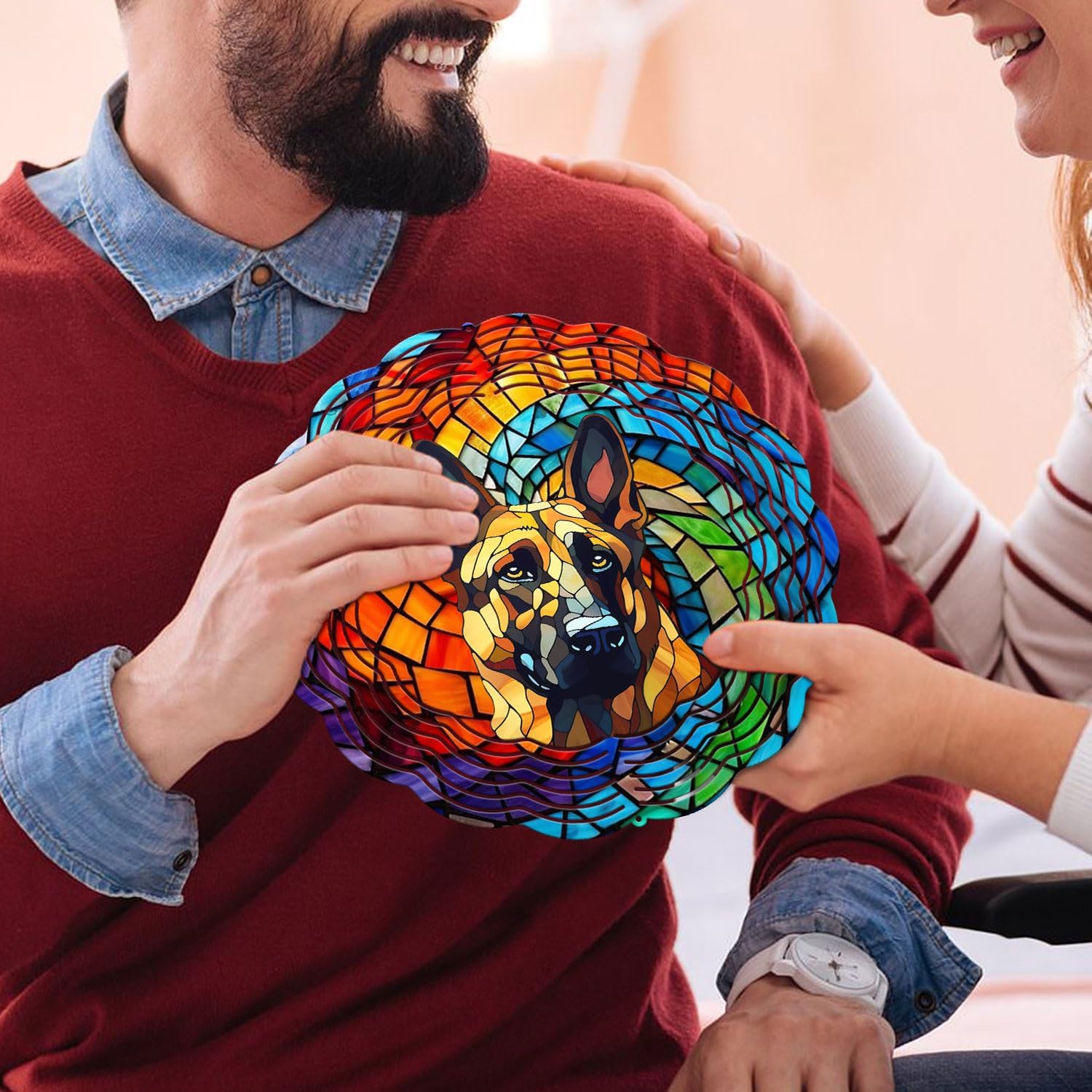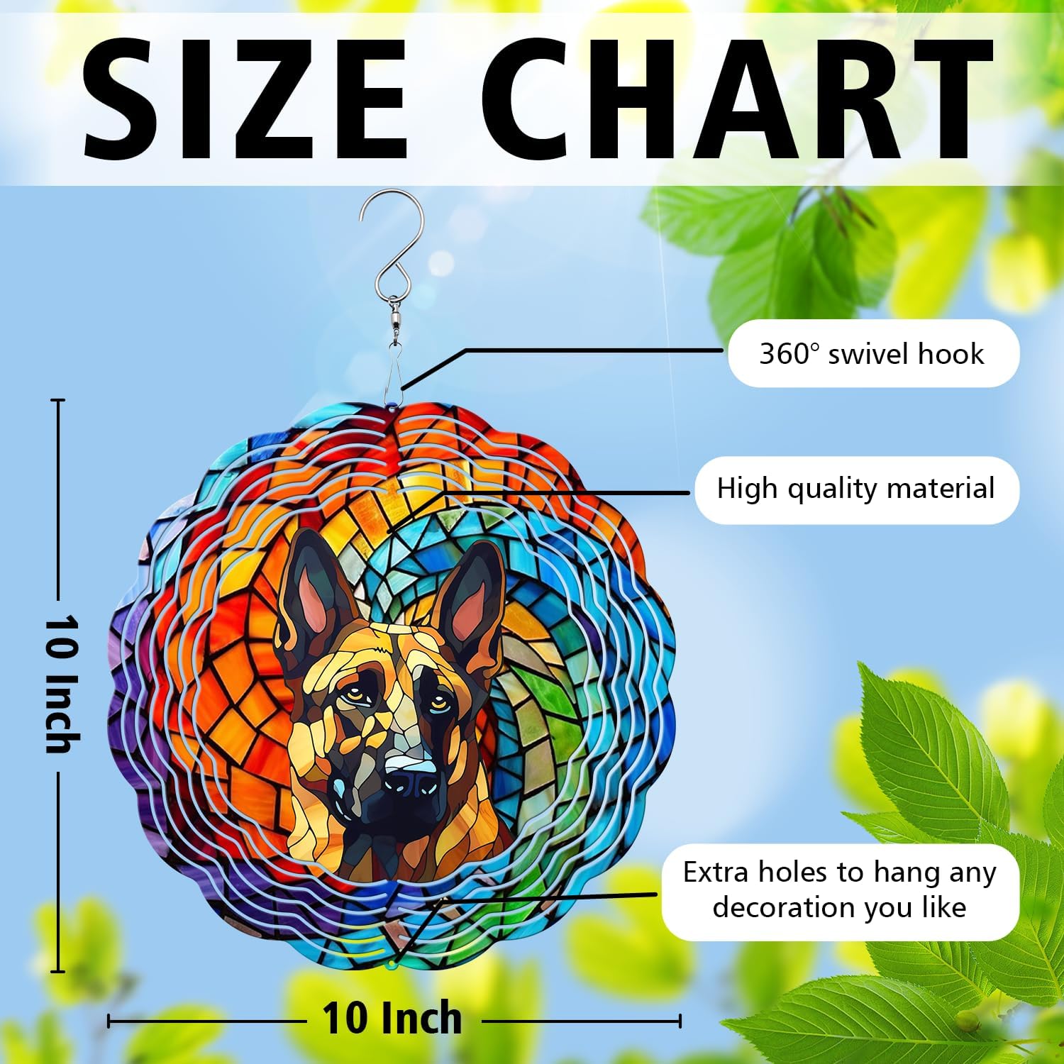 German Shepherd Yard and Garden Wind Spinner, Unique 3D Hanging German Shepherd Wind Spinner