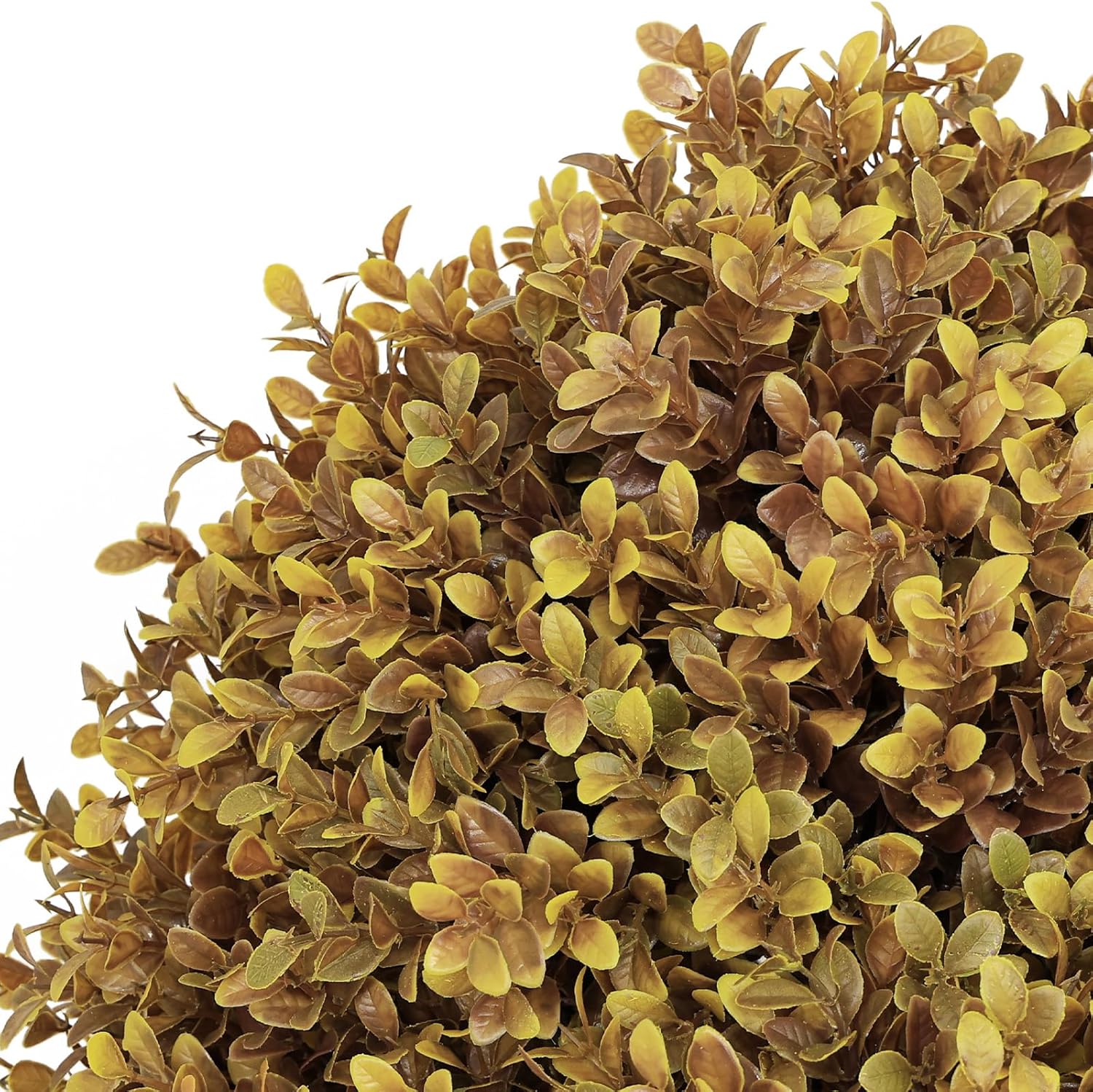 - Realistic Fall Color & Texture: Each faux topiary ball bush features realistic autumn-toned boxwood foliage in rich golden yellow, these boxwood plants look like real fall foliage. Each ball bush features a full, lifelike shape—perfect artificial outdoor shrubs for seasonal curb appeal.