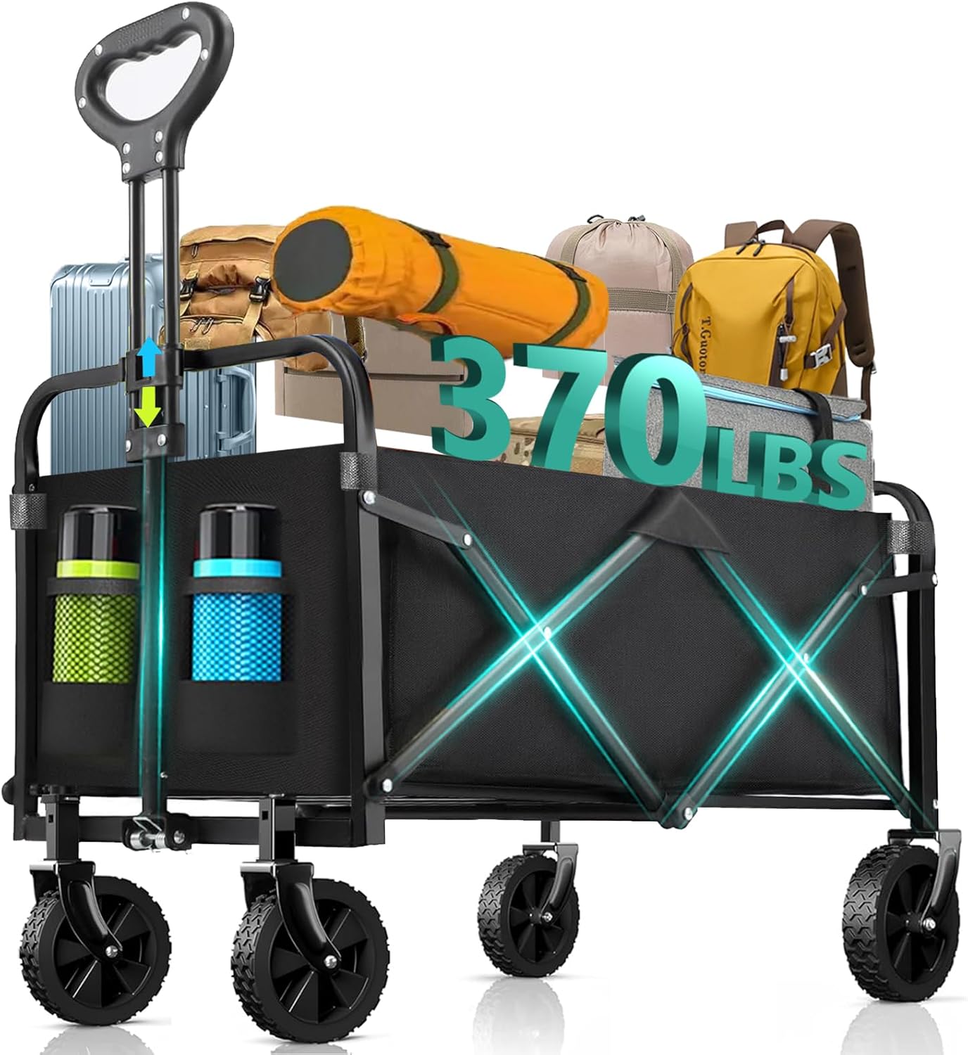 - 【Sturdy & Waterproof Premium Materials】: Made of high-quality 600D premium Oxford fabric, it can hold 370LBS load capacity. The wagon cart is sturdy, long-lasting and water, scratch, tear and wear resistant. Easily handle severe weather and heavy loads conditions. Enjoying outdoor activities with peace of mind