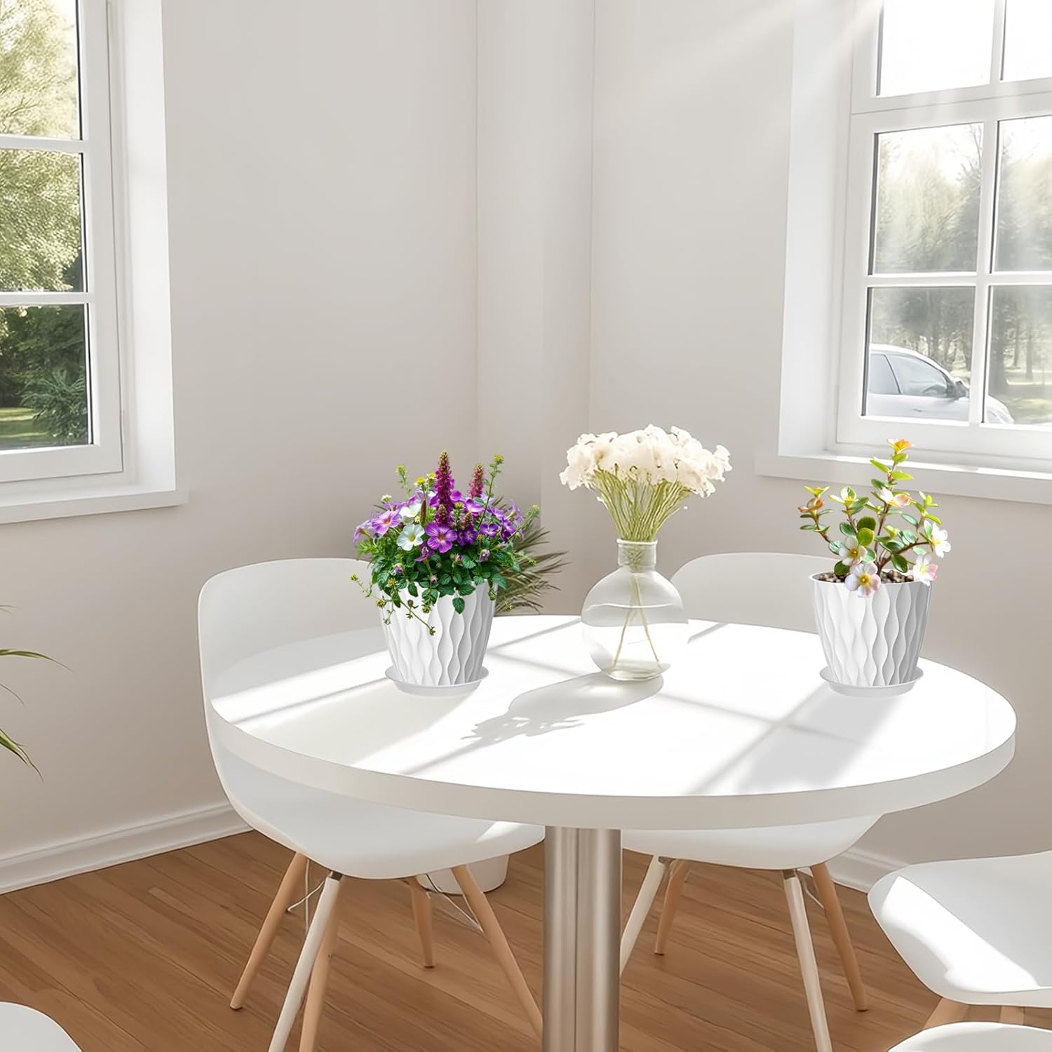 - 💧 Optimal Plant Health with Drainage & Saucers: Each pot features essential drainage holes to prevent root rot, paired with matching saucers to catch excess water and protect your surfaces. Enjoy worry-free watering!