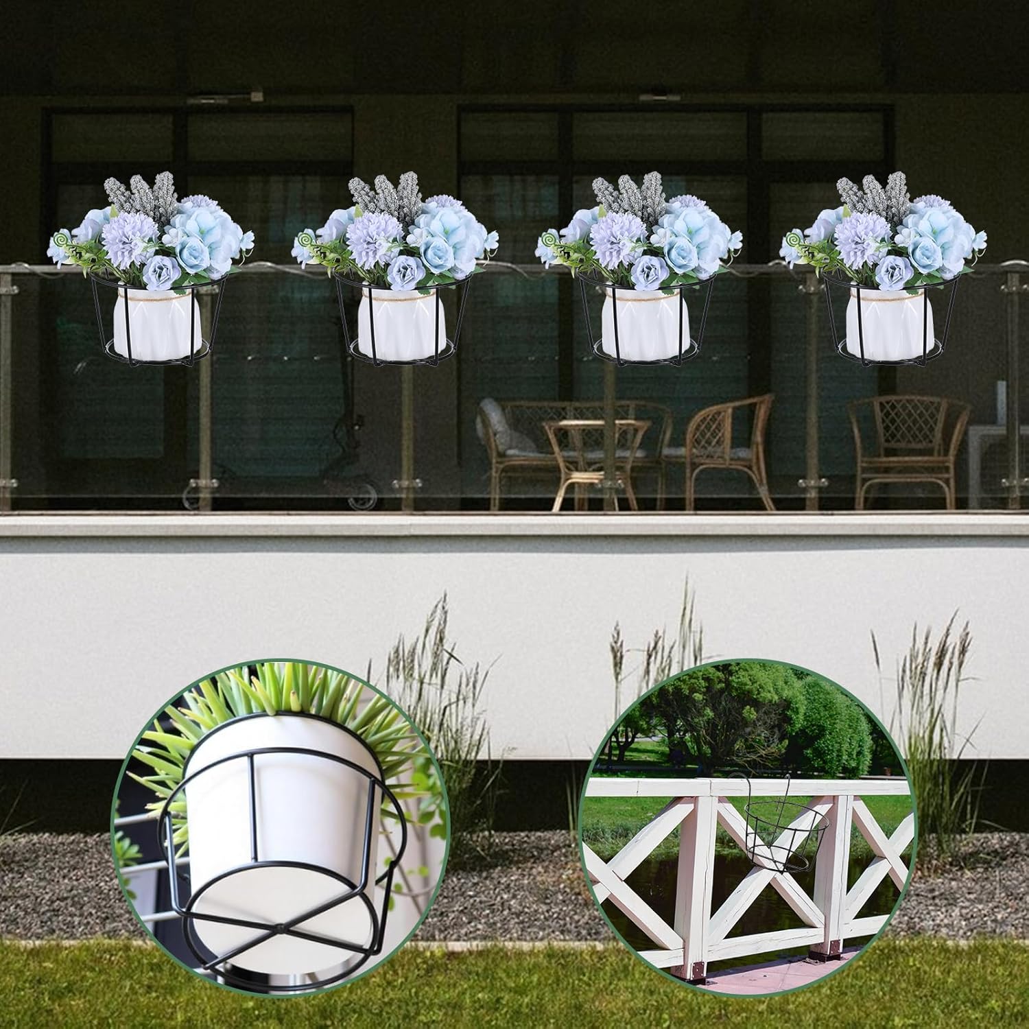 - Perfect Size: Each metal railing planter measures 6.57" in diameter (top), 4.92" (bottom), and 3.94" in height, ideal for outdoor railing planter and deck hanging planters for railing.