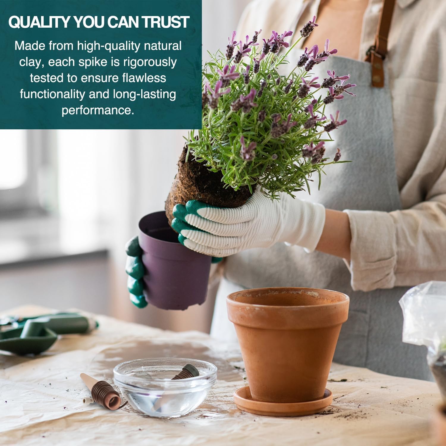 - PREMIUM CLAY MATERIAL – Crafted with high-quality clay for reliable water release, these outdoor and indoor plant watering system ensure plants stay hydrated while maintaining proper soil aeration. Perfect for ceramic planters and house plants requiring precise care.