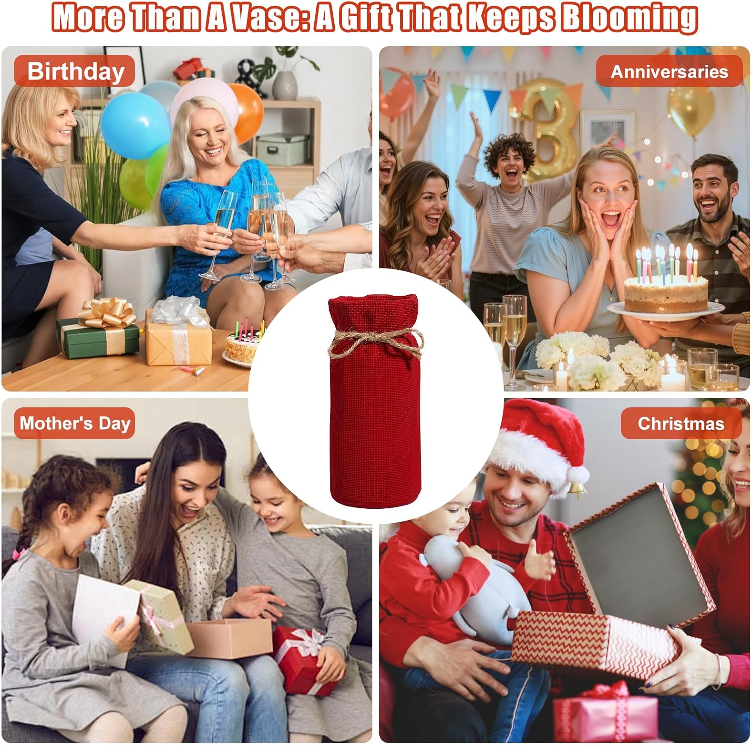 Fall Decor Vase for Flowers Fall Centerpieces for Tables Vases Home Decor Vintage Flower Vase Dining Table Centerpiece Decor(Red)