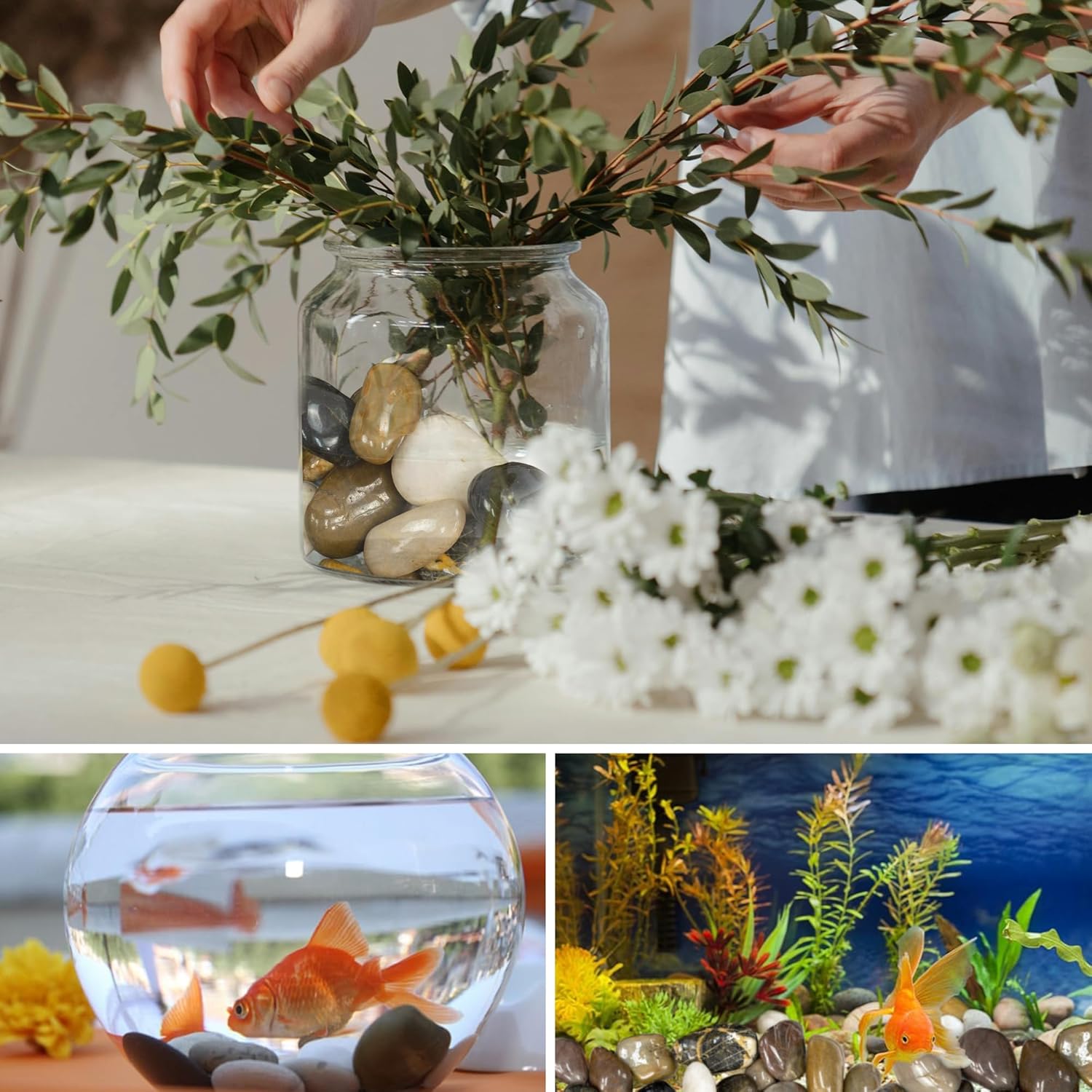 - 【Warm Tips】 Made from polished stones, these decorative pebbles are safe for use in both indoor and outdoor settings. Before adding the rocks to your aquarium vase or plant pot please wash the surface with hot soapy water, and then wash it with clean water