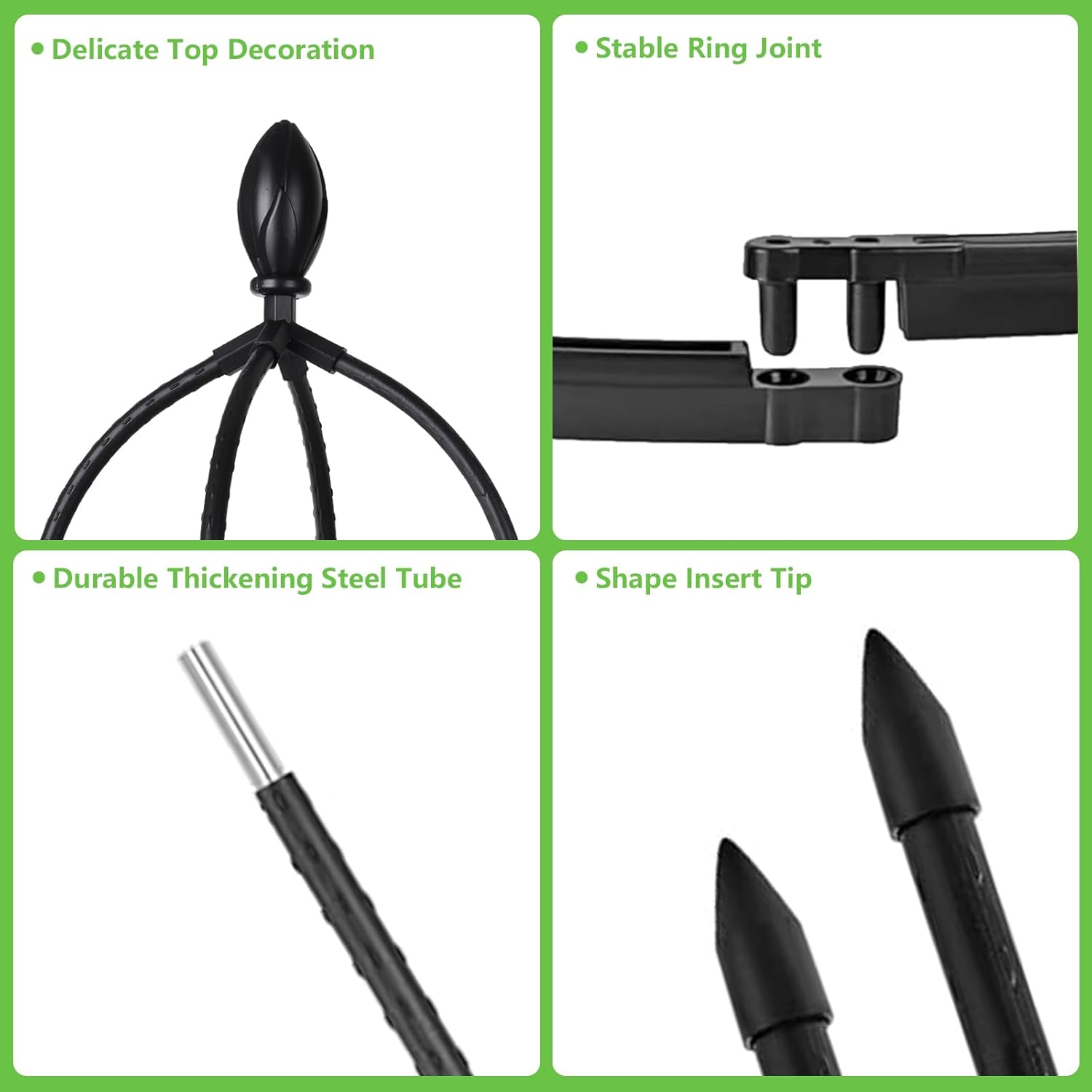 - Durable Material: These garden trellis are made of rustproof metal pipe with heavy duty plastic coated, which is sturdy and friendly for plants.