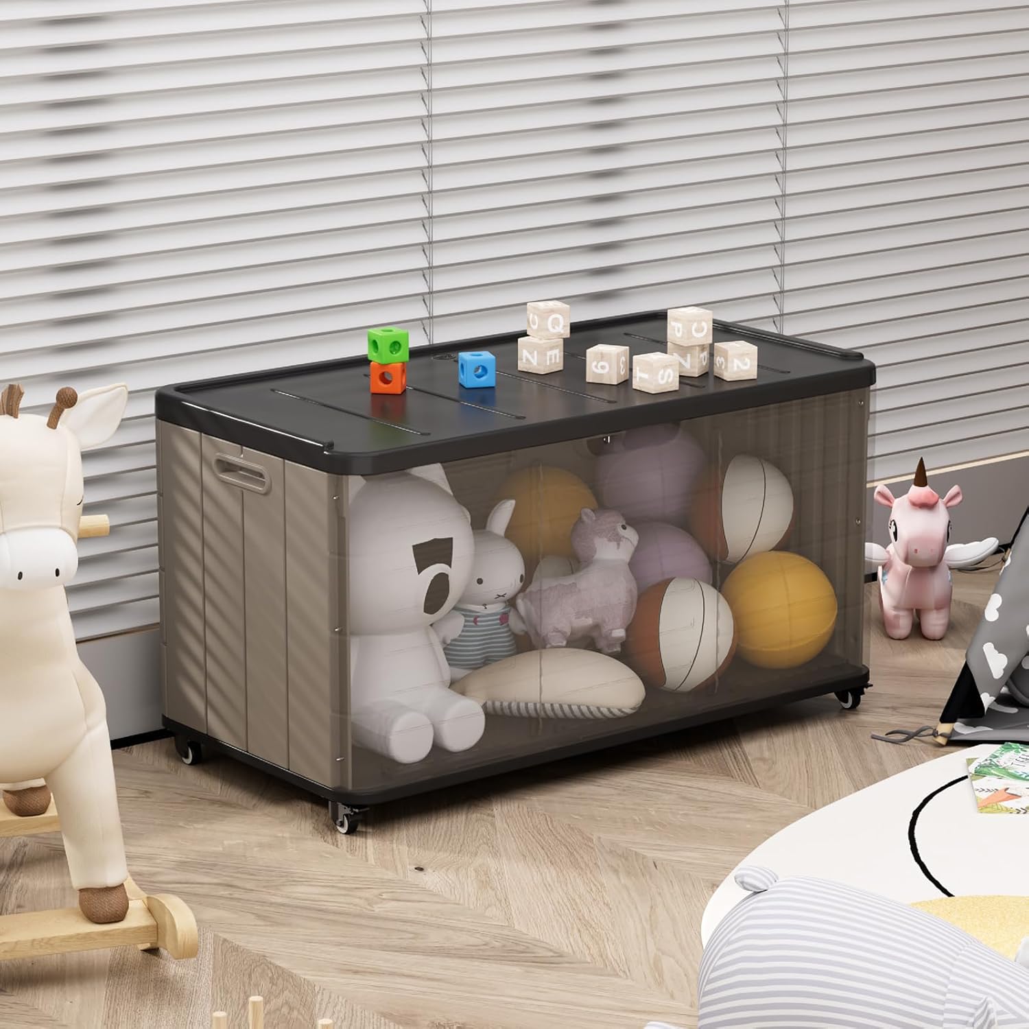 ZZM 110 Gallon Outdoor Deck Box with Wheels, Waterproof Resin Storage Cabinet for Patio Cushion and Tools, Lockable Storage Box, Coffee