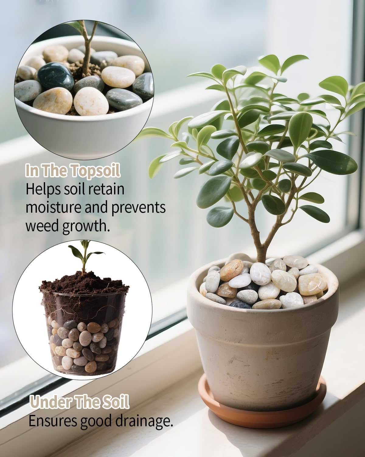 - Durable & Low-Maintenance:Built to last! Unlike wood mulch, these fade-resistant rocks won’t decompose, rot, or attract pests. Save time and money with a permanent solution that retains its natural beauty year-round