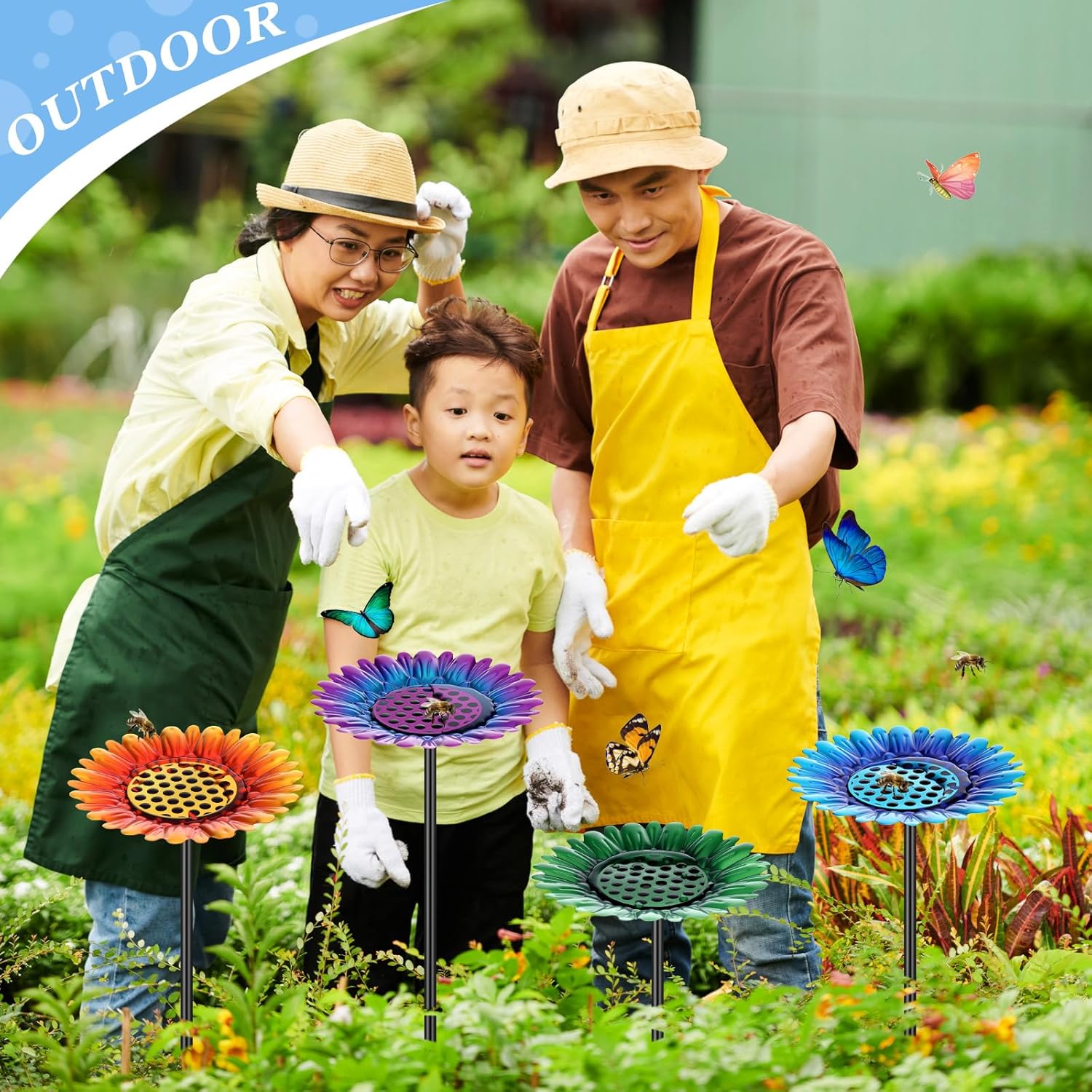 4 Pack Large Bee Watering Station 8.8'' for Bee Garden Anti Drowning Metal Pollinator Water Feeder Flower Butterfly Bath Bowl Colorful Bird Gardening Decoration, Rust Proof