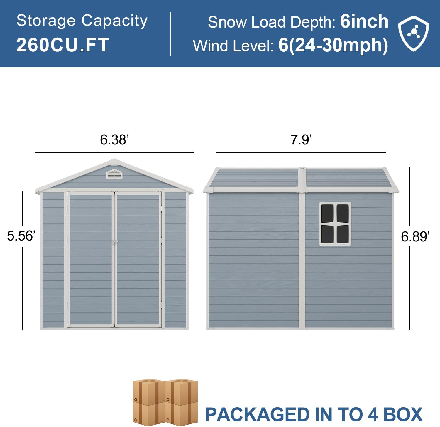 - Resin Materials: This storage shed constructed from high-quality resin, the item offers exceptional durability, enabling it to withstand various outdoor weather conditions, including UV rays, humidity, and temperature fluctuations.
