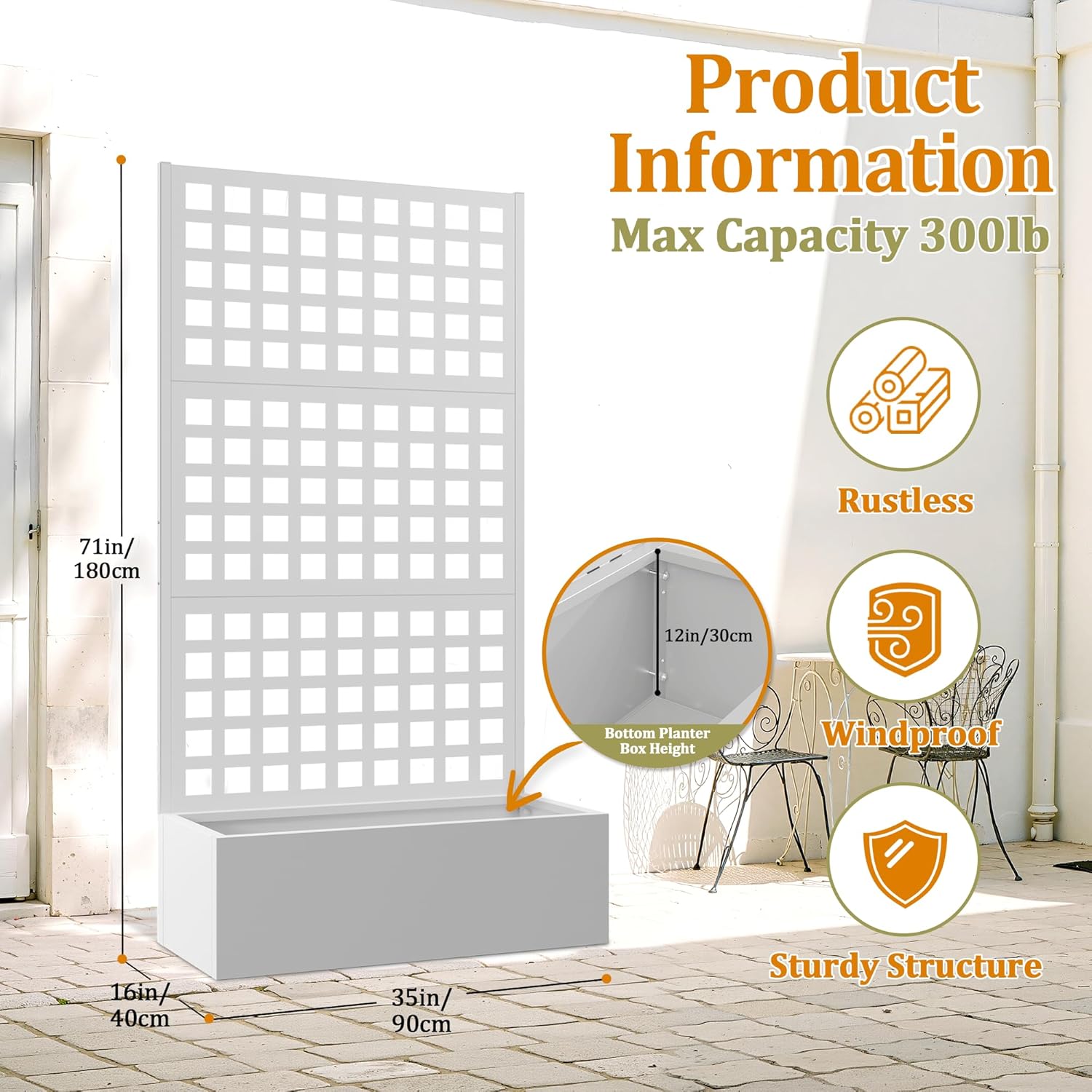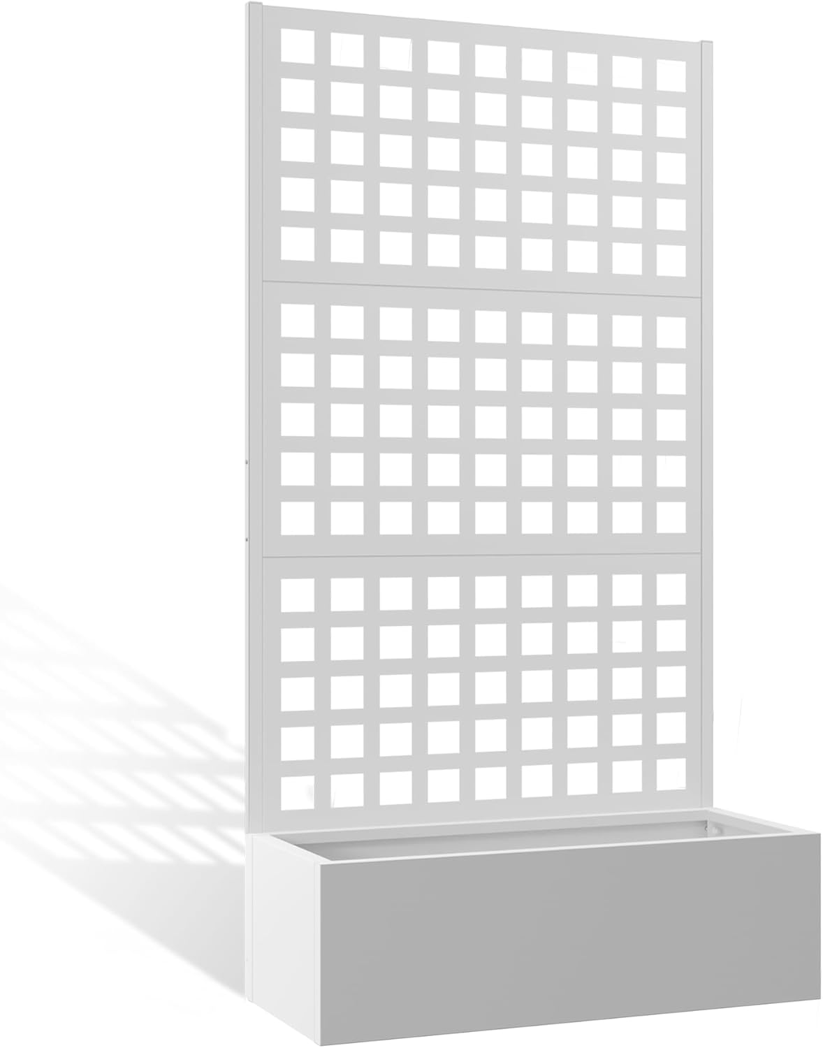 - 💧【Spacious and Efficient Planting Area】Enjoy abundant space in this metal planter box with trellis, ideal for vegetables, herbs, and climbing flowers. Drainage holes prevent waterlogging, making it a perfect garden raised bed for climbing plants. With its vertical structure, this metal planter with privacy screen allows you to grow upward, saving ground space. Plus, this metal planter box with trellis is great for small patios or urban gardens.
